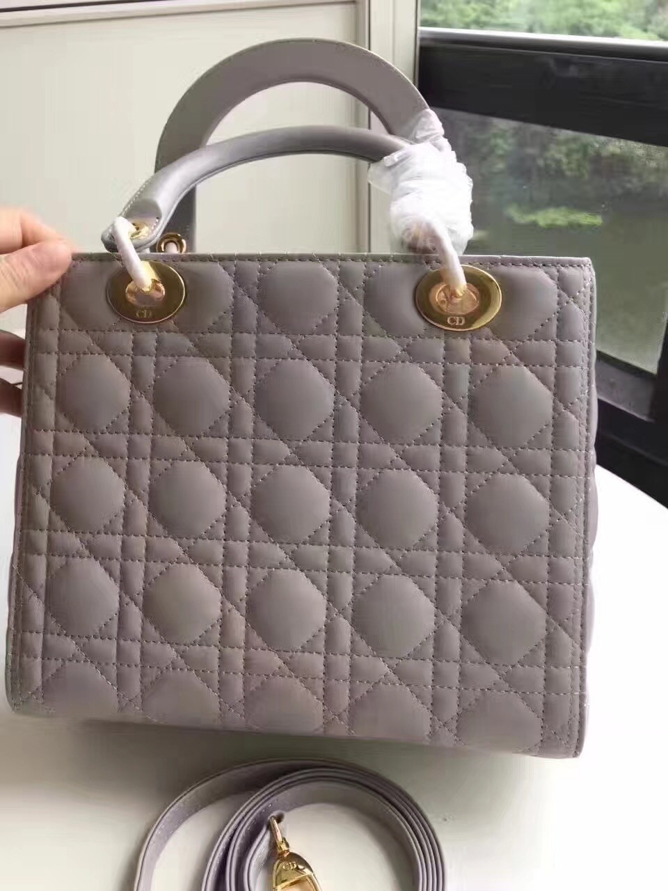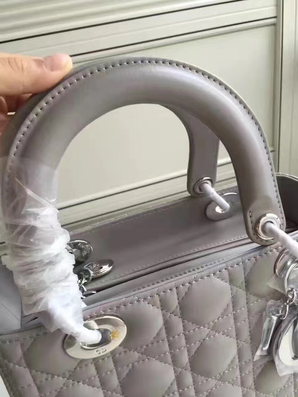 Dior Medium Lady Dior Bag In Grey Lambskin