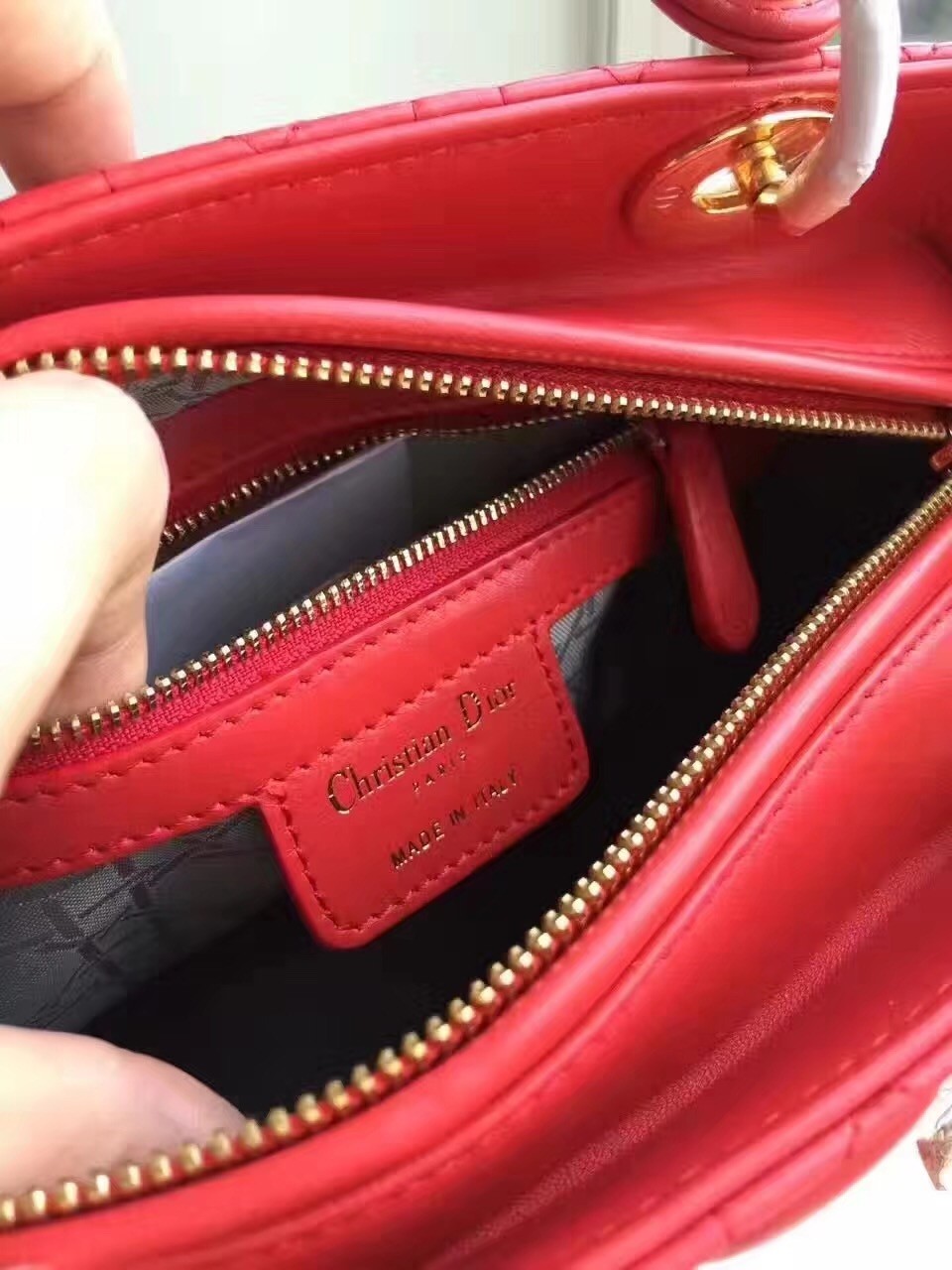 – Dior jacquard textile lining with one zip pocket