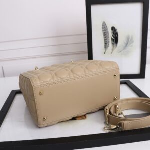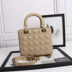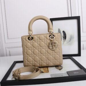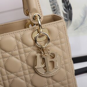 Dior Medium Lady Dior Bag with Enamel Charm In Beige Lambskin