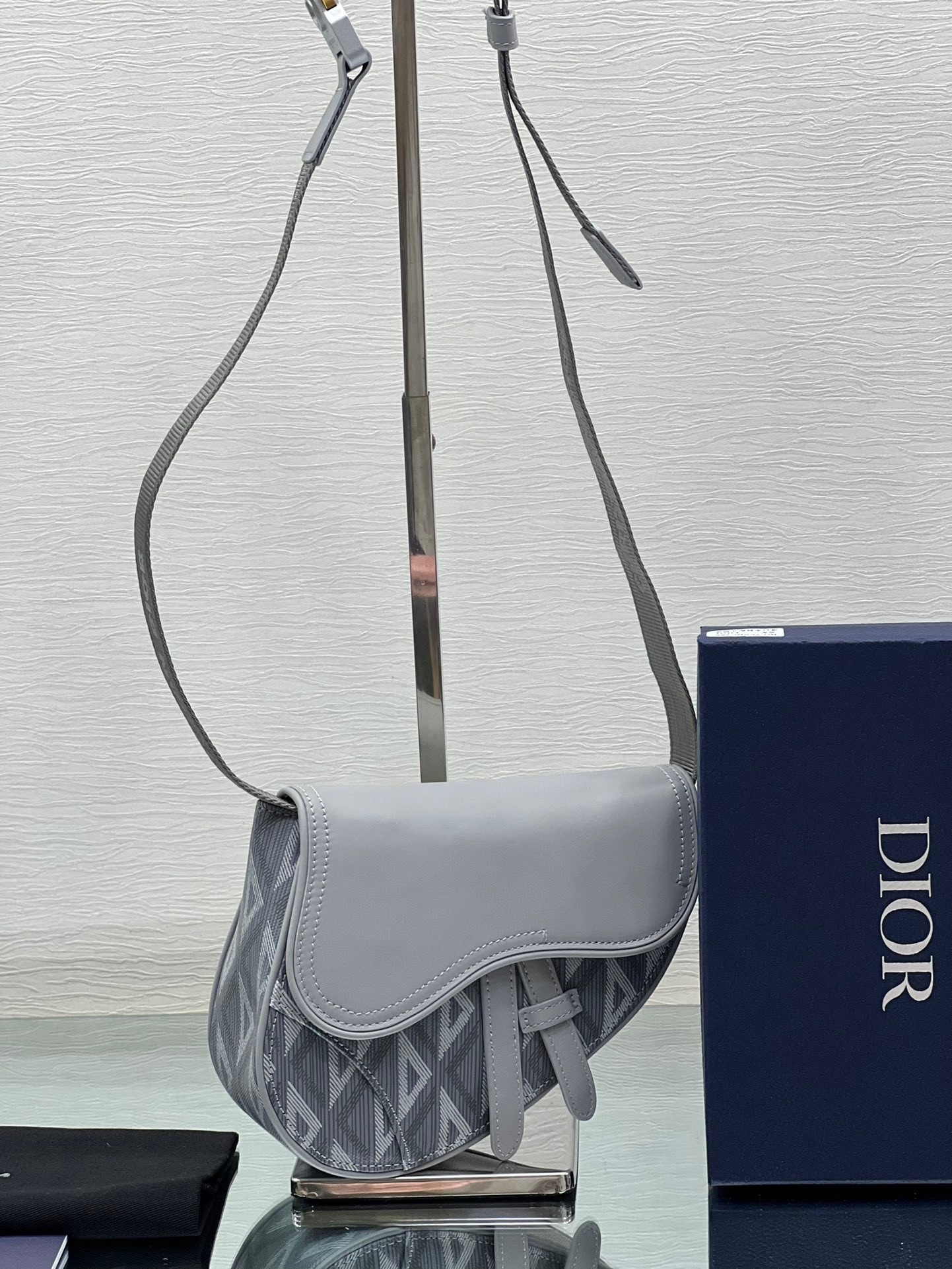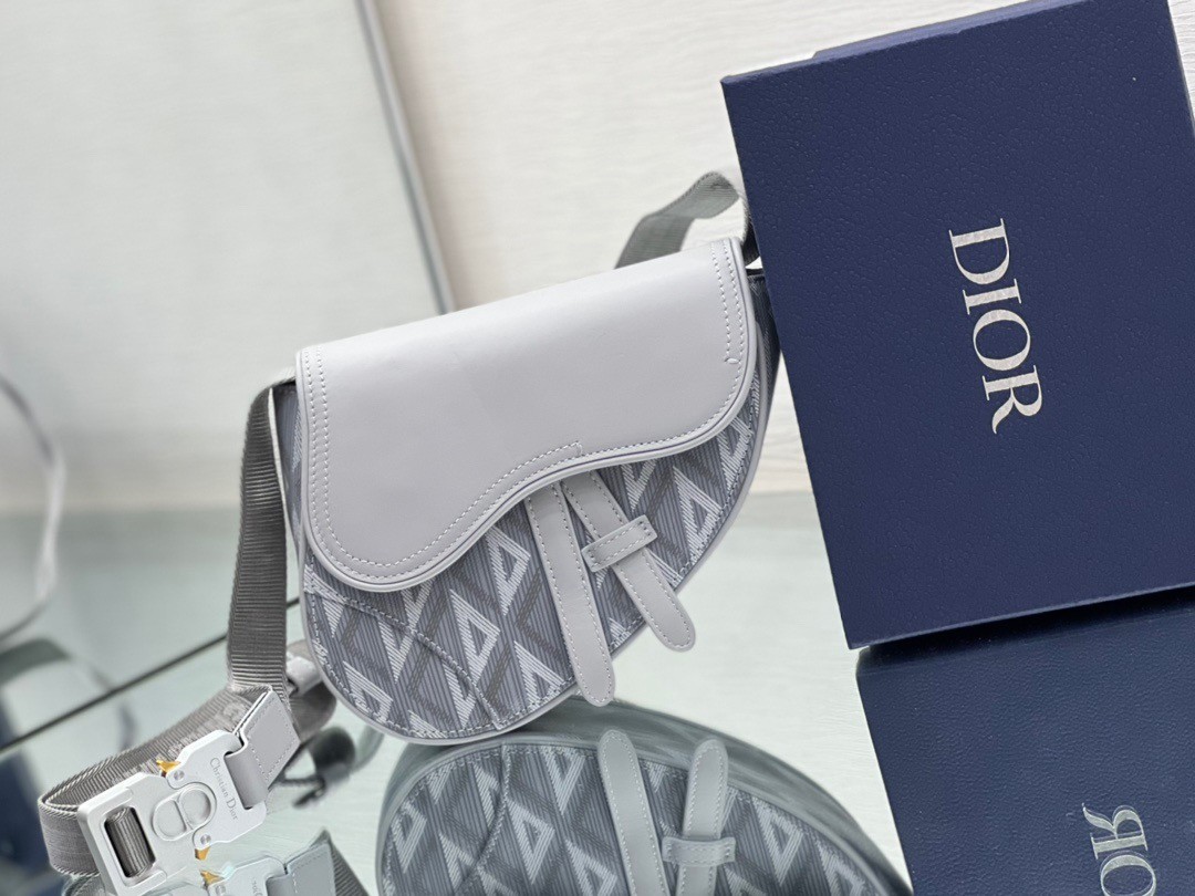 Dior Men's Mini Saddle Bag In Gray CD Diamond Canvas