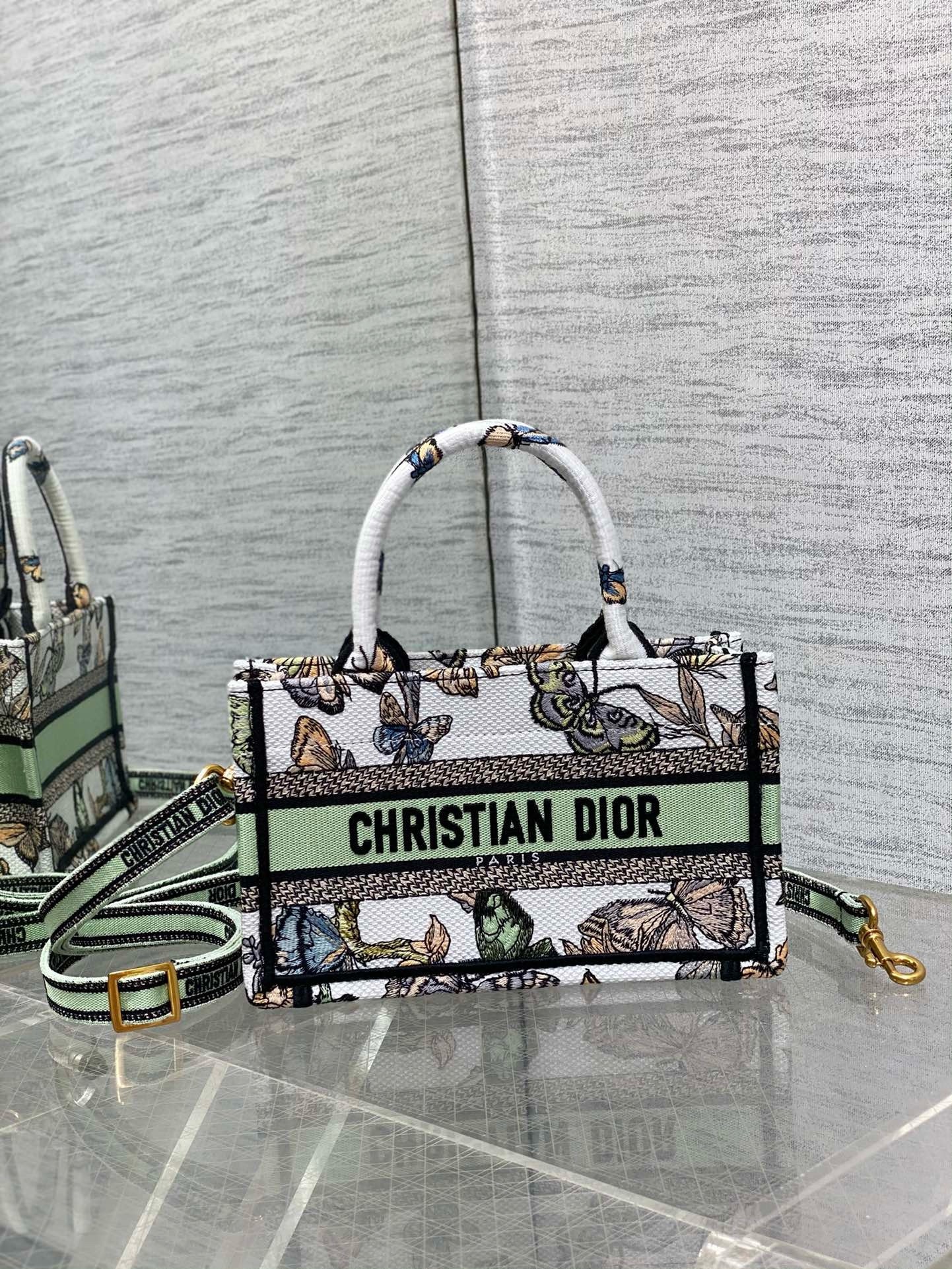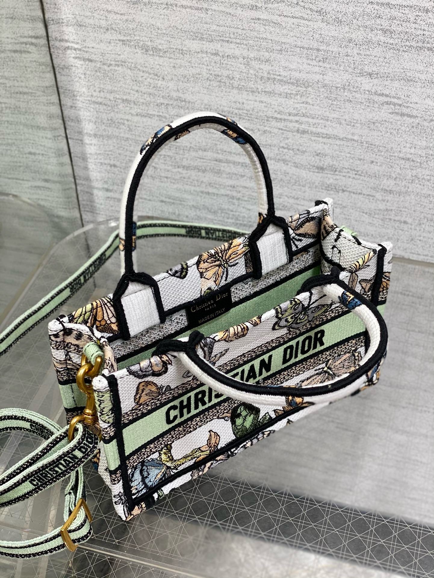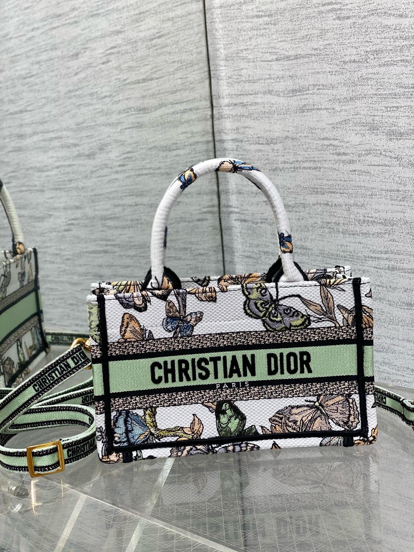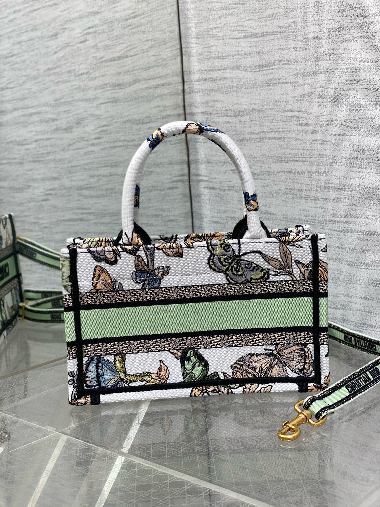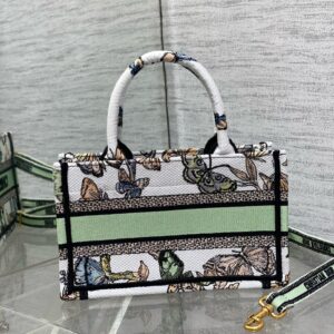 Dior Mini Book Tote with Strap in White Toile de Jouy Mexico Embroidery