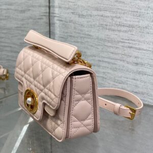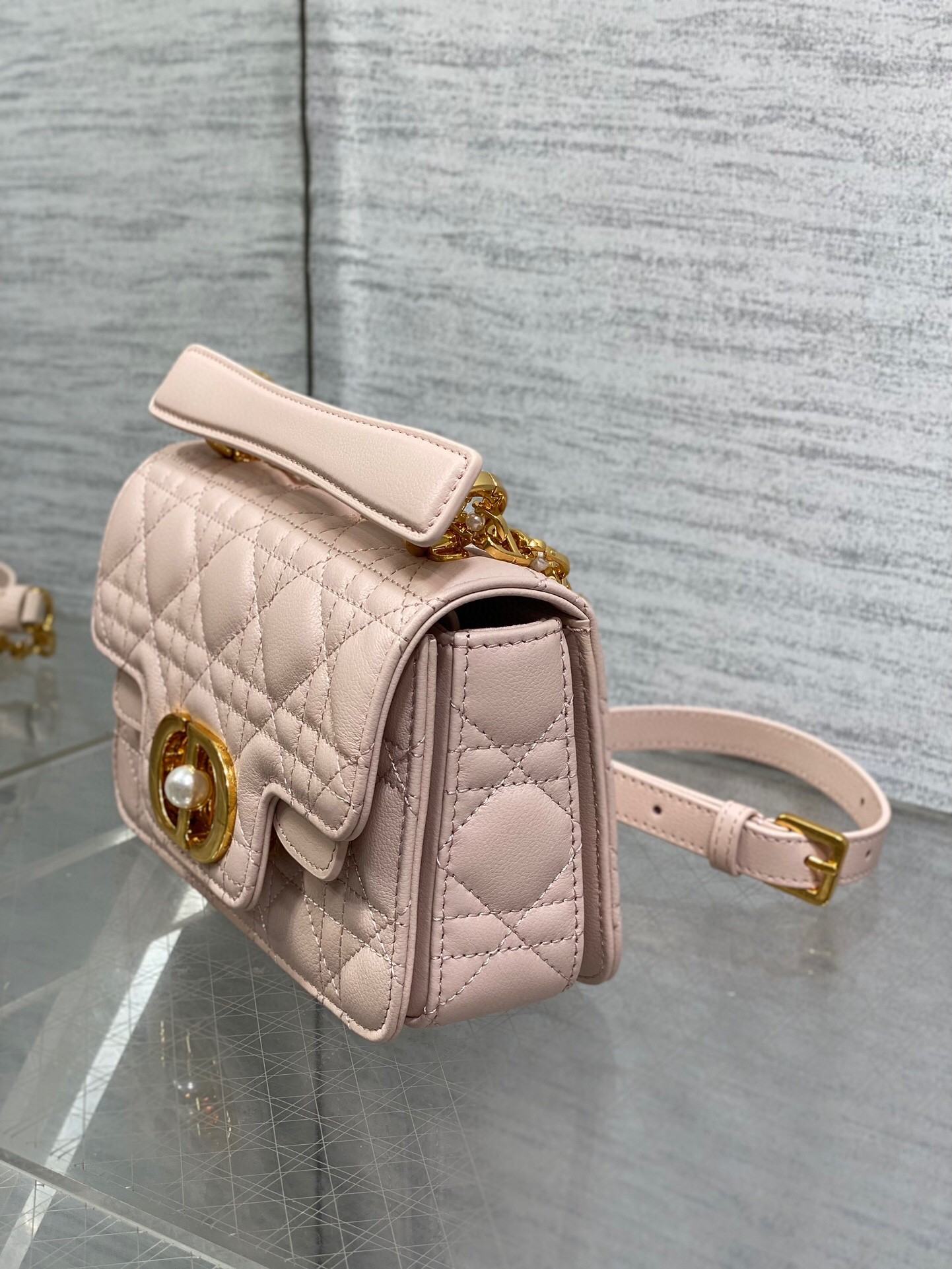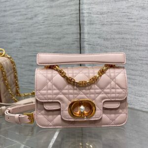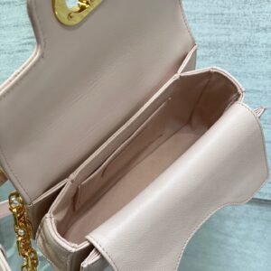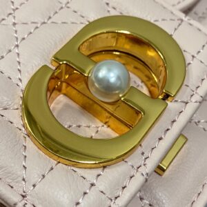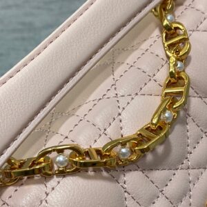 – Removable and adjustable chain shoulder strap with white resin pearls and leather insert