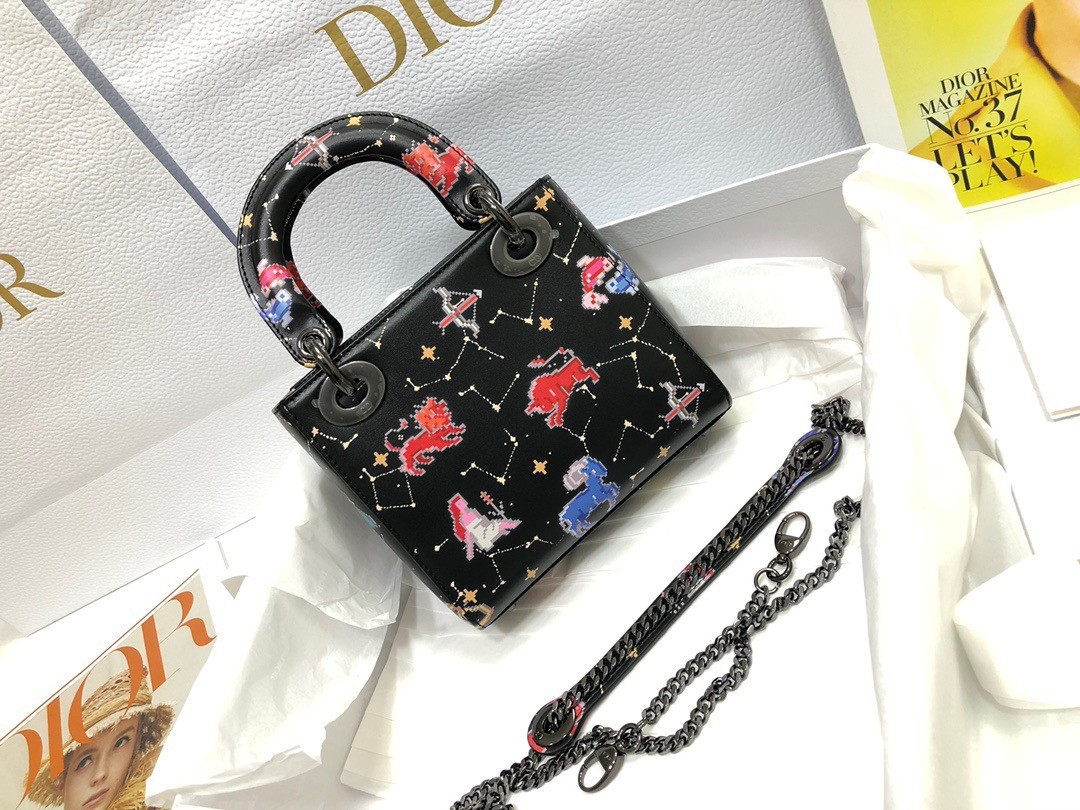 – Calfskin with Multicolor Dior Pixel Zodiac Print