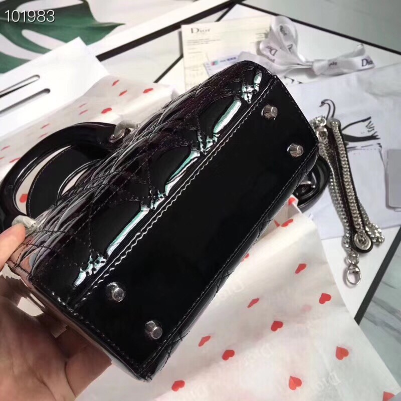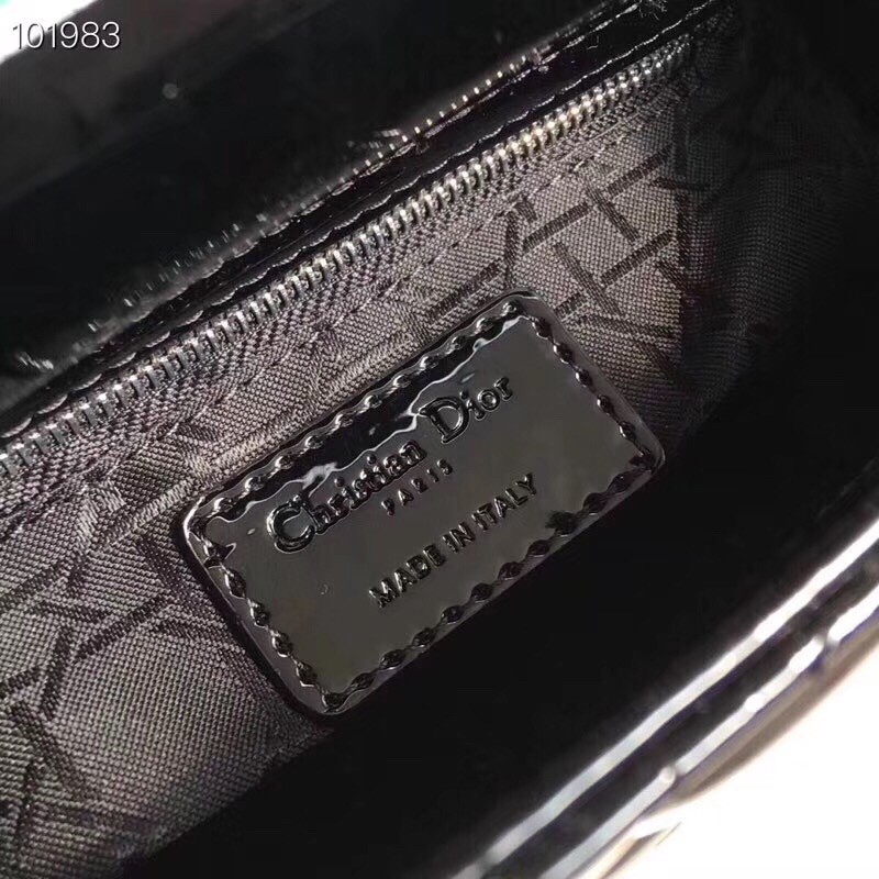 Dior Mini Lady Dior Bag In Black Patent Calfskin