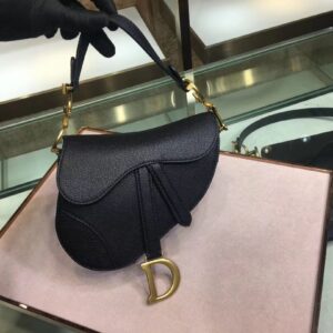 Dior Mini Saddle Bag In Black Grained Calfskin