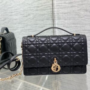 Dior Miss Dior Top Handle Bag in Black Cannage Lambskin