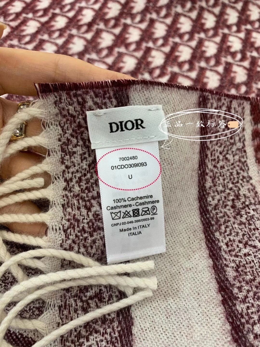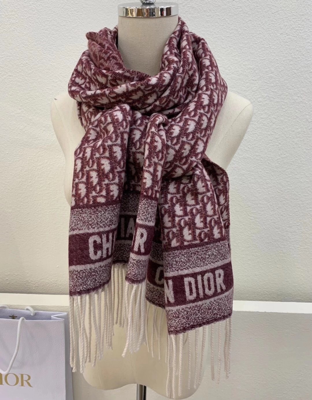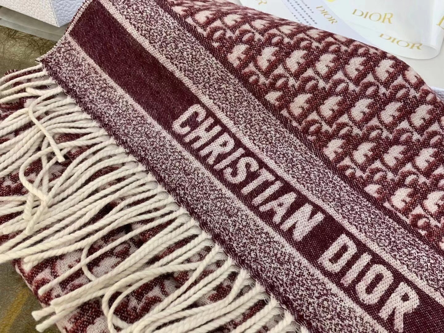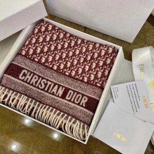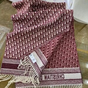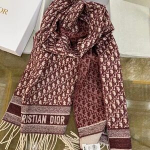 Dior Oblique Scarf In Burgundy Cashmere