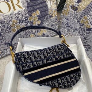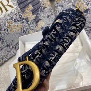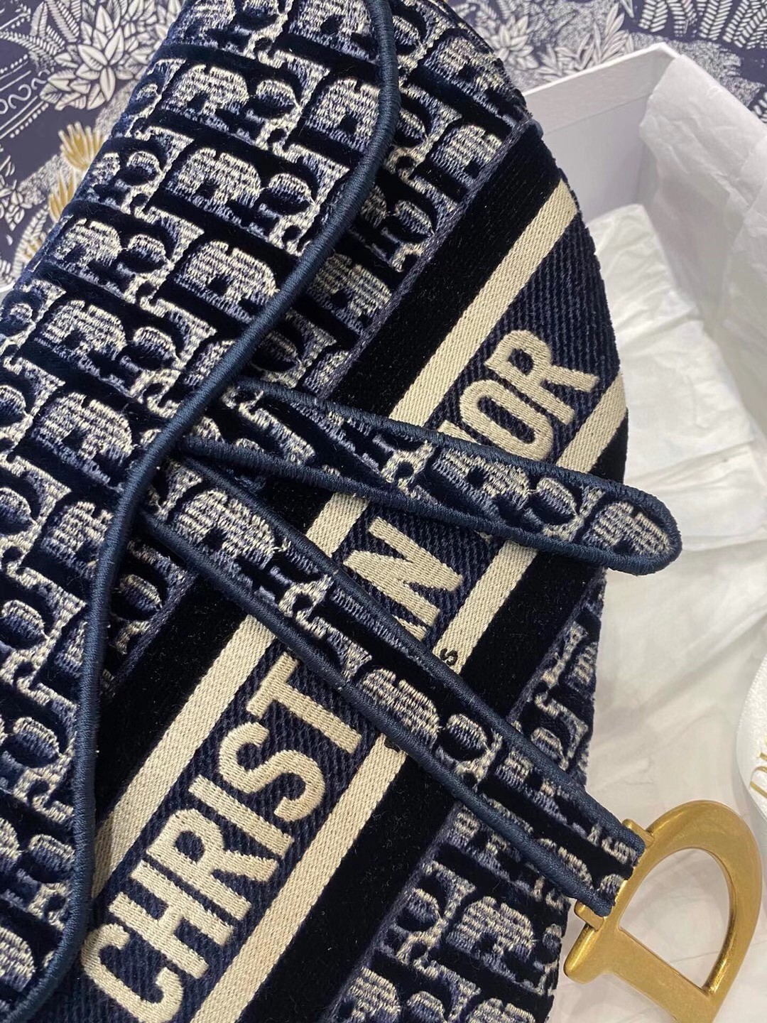 Dior Saddle Bag In Blue Dior Oblique Embroidered Velvet