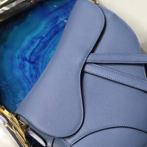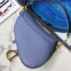 Dior Saddle Bag In Denim Blue Grained Calfskin