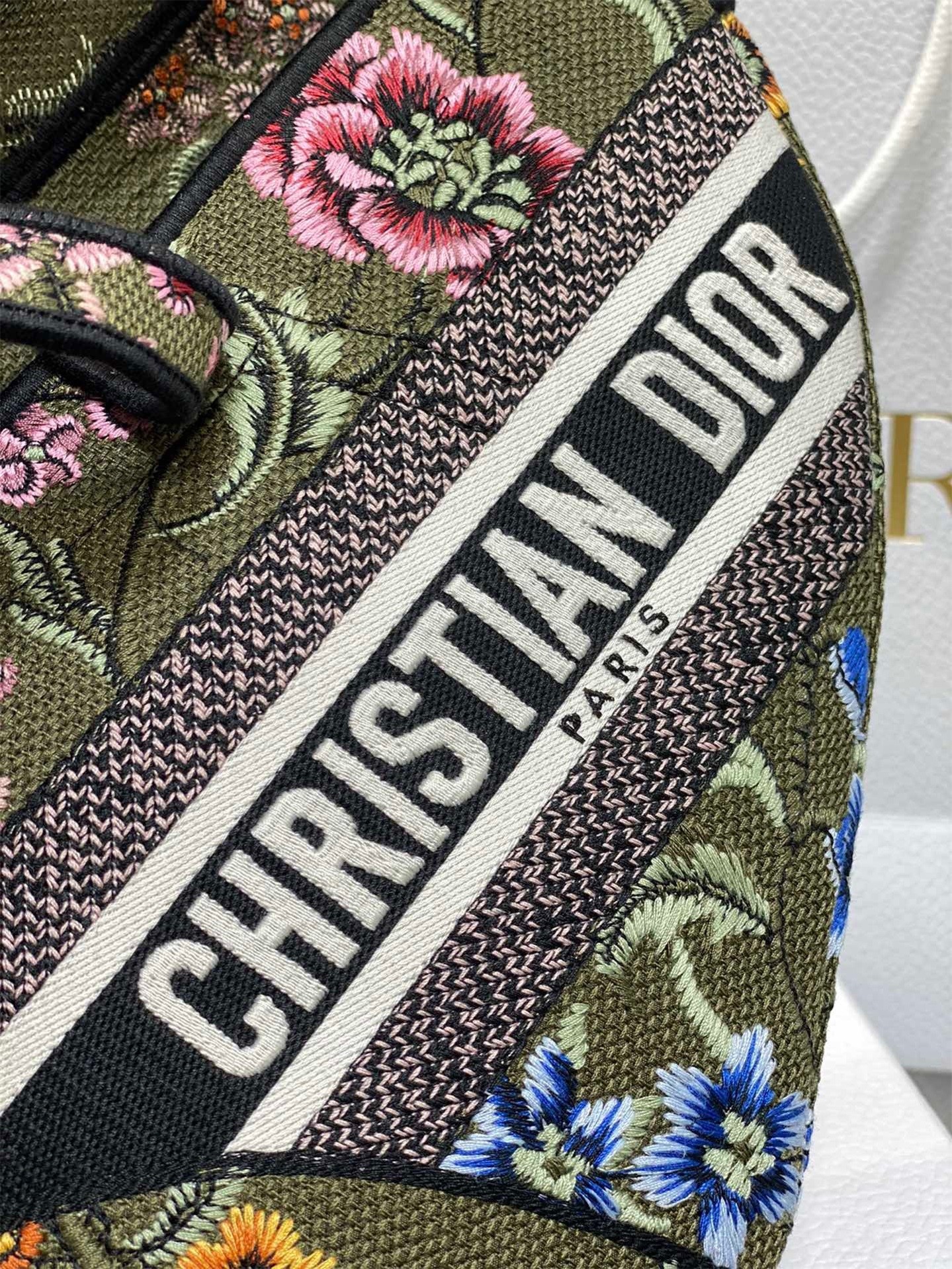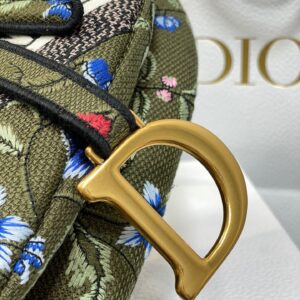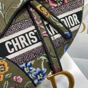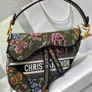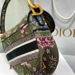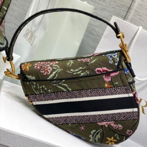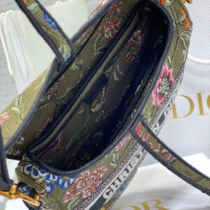 Dior Saddle Bag In Green Multicolor Dior Petites Fleurs Embroidery