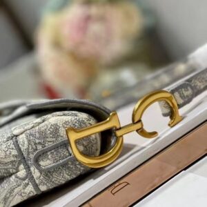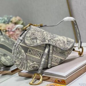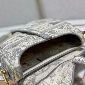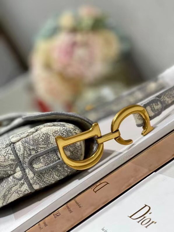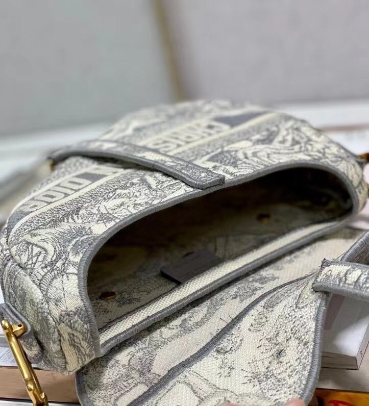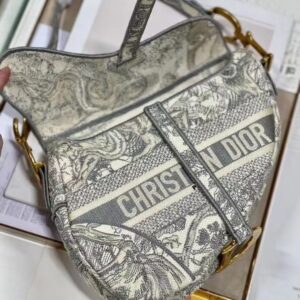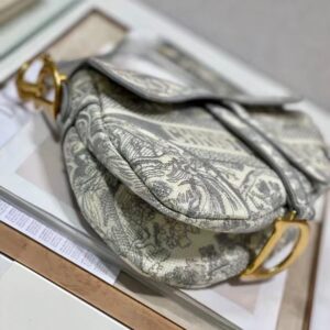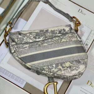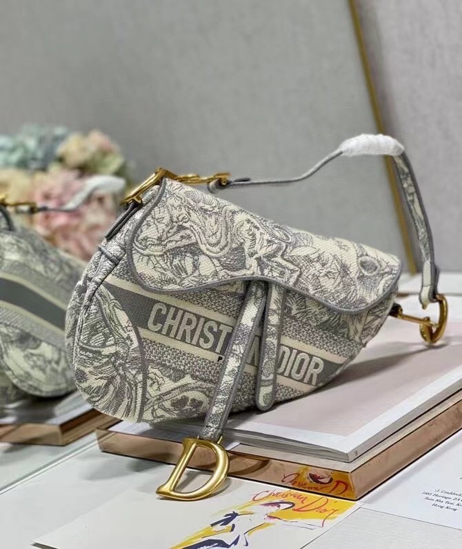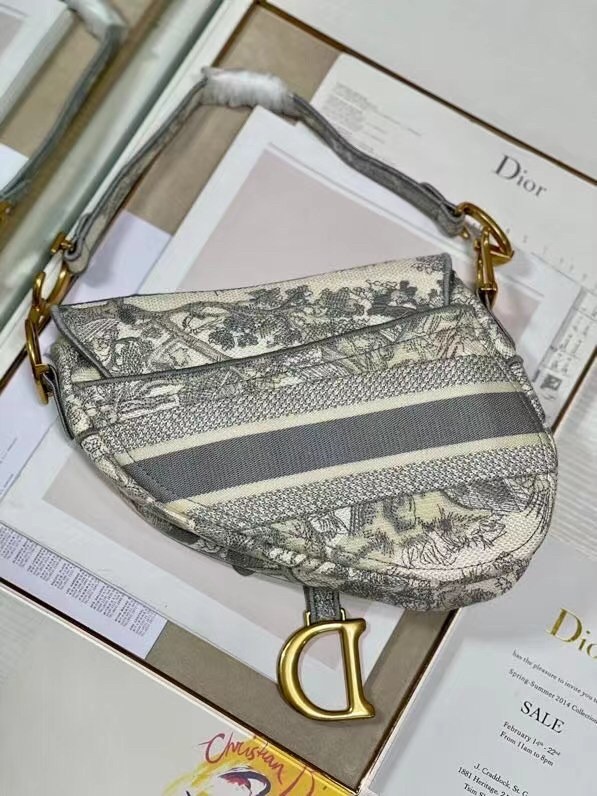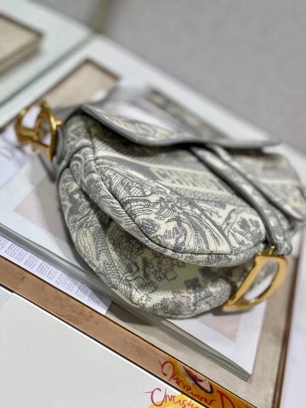 Dior Saddle Bag In Grey Toile de Jouy Embroidery