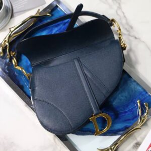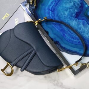 Dior Saddle Bag In Navy Blue Grained Calfskin