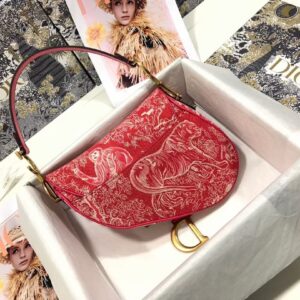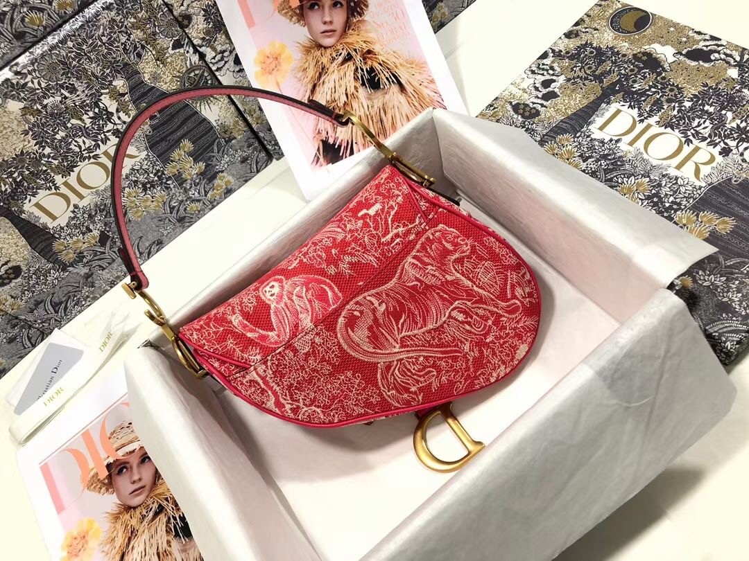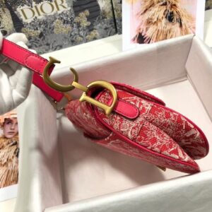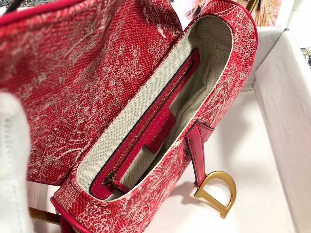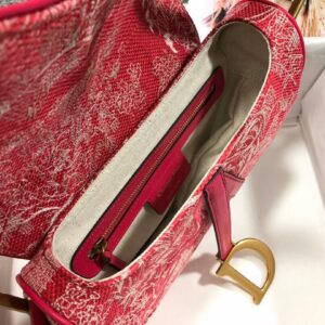 Dior Saddle Bag In Red Toile de Jouy Reverse Jacquard