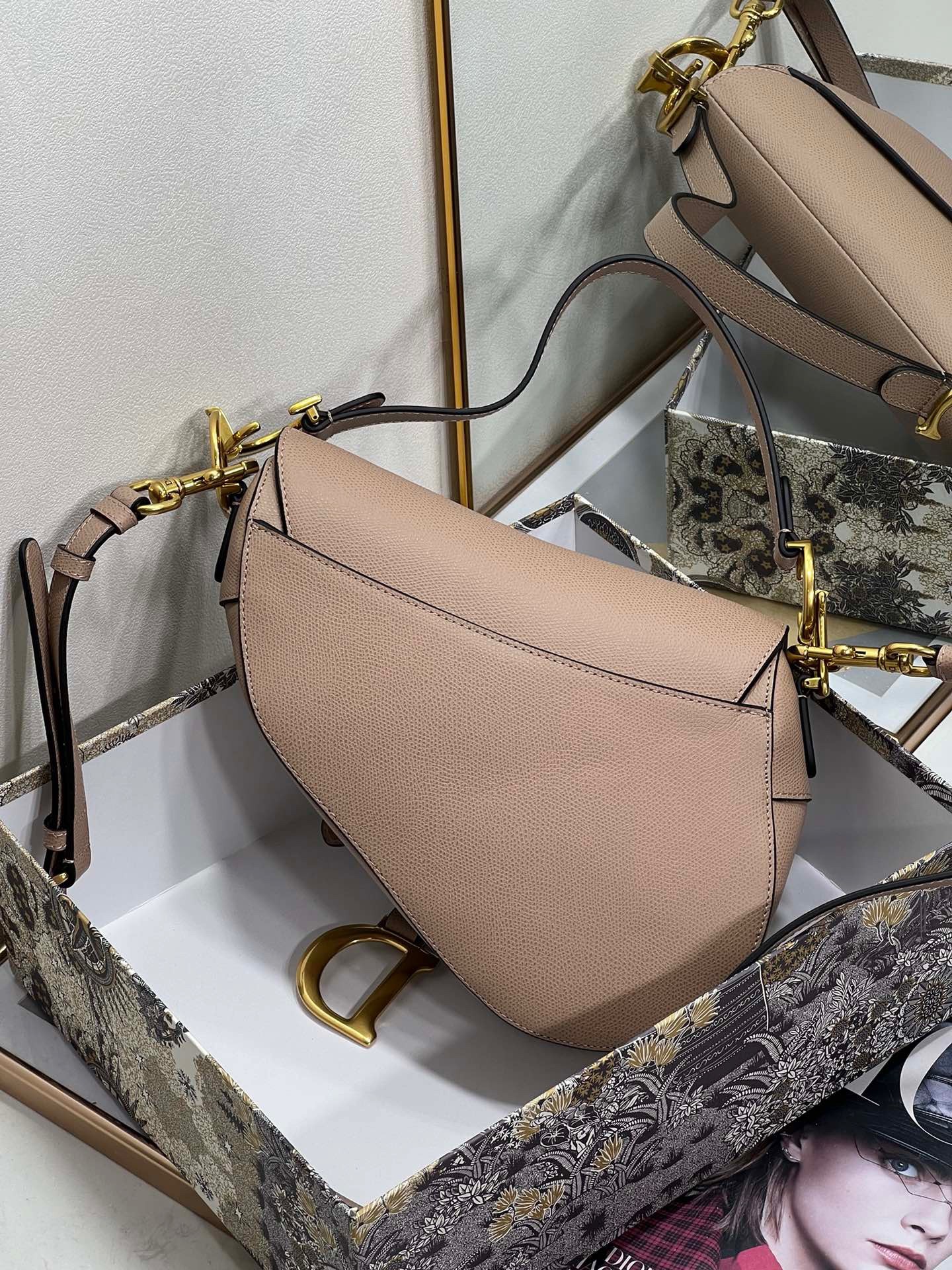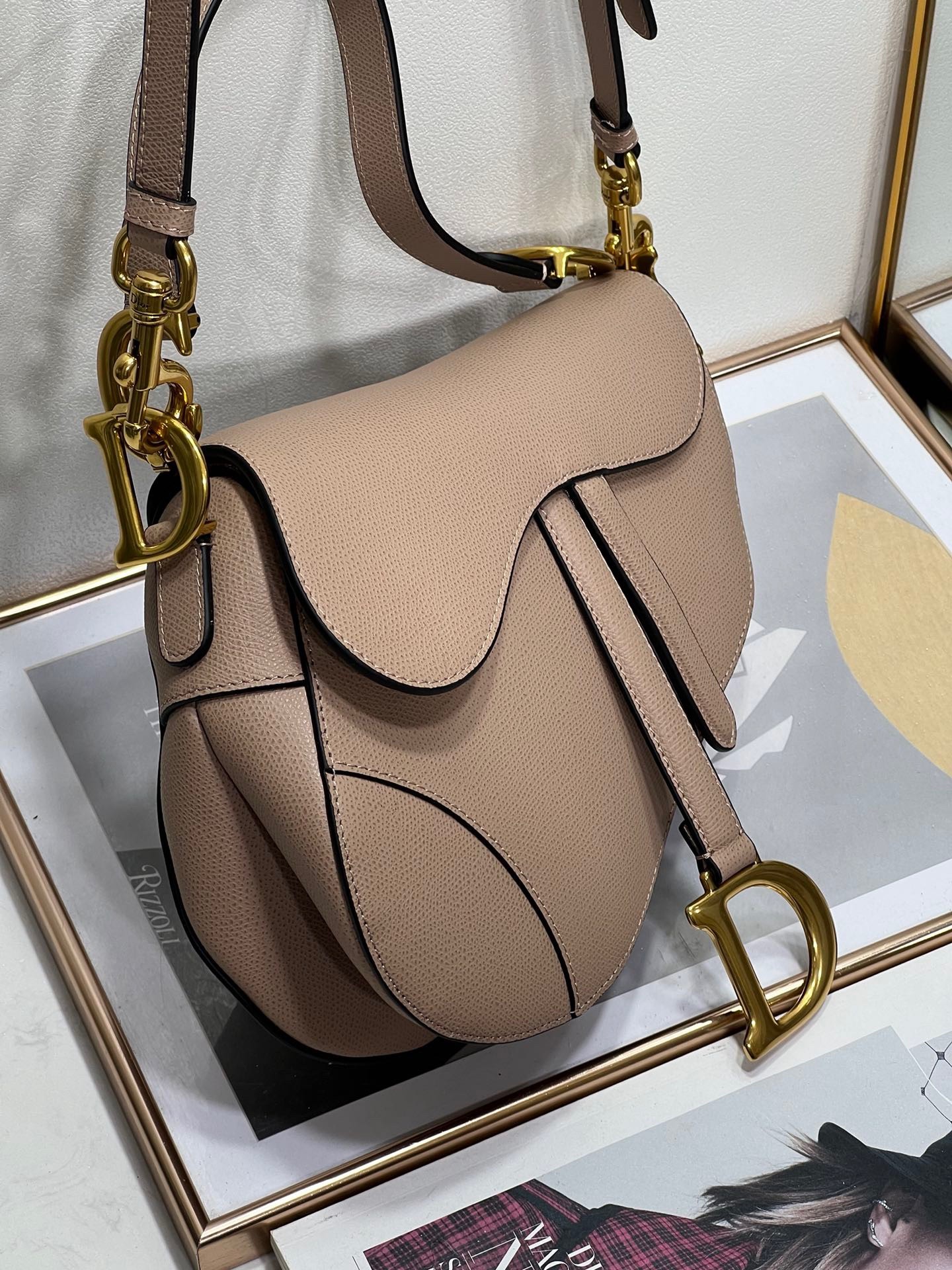 Dior Saddle Bag with Strap in Warm Taupe Grained Calfskin