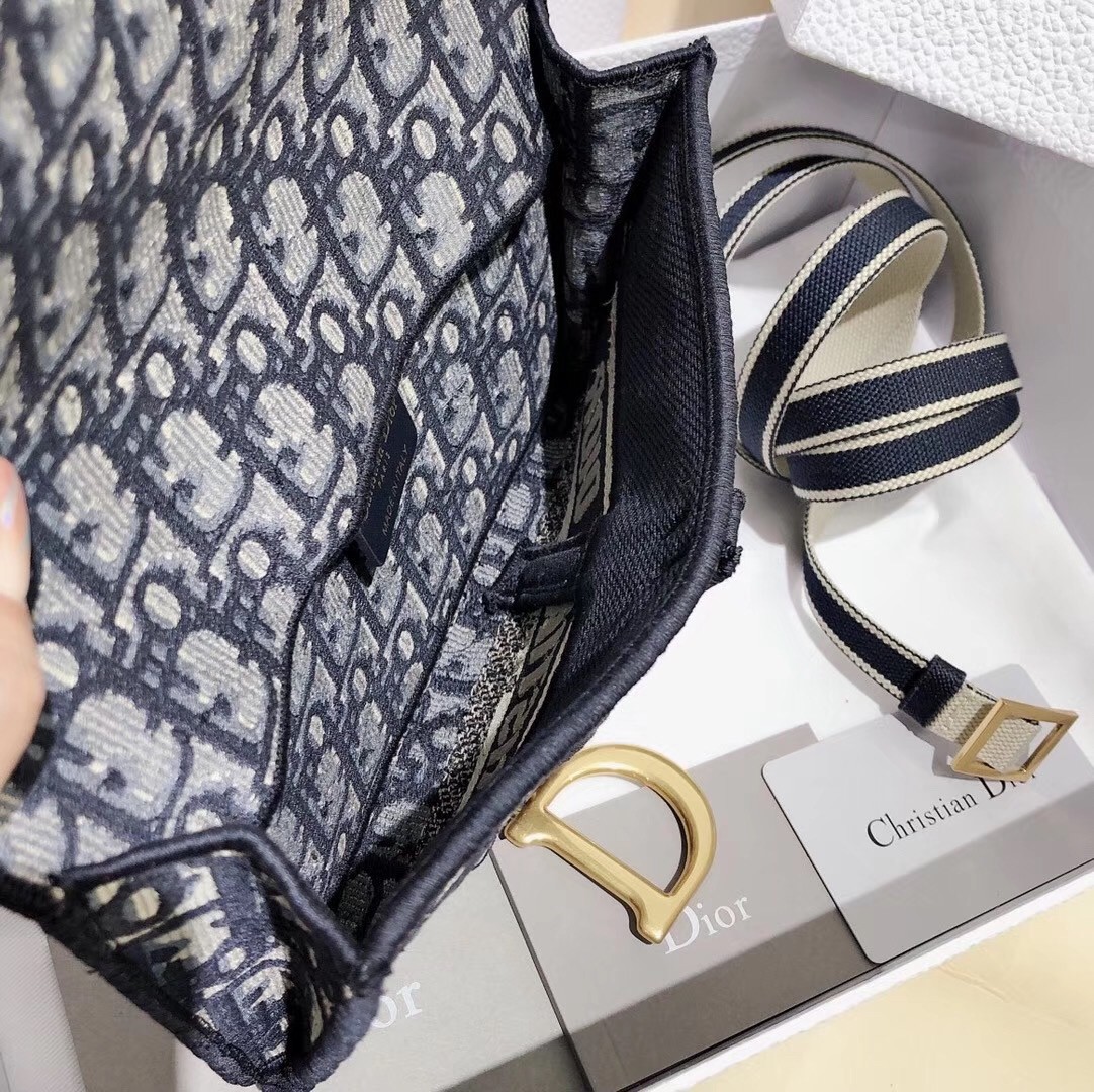 Dior Saddle Pochette In Blue Oblique Canvas