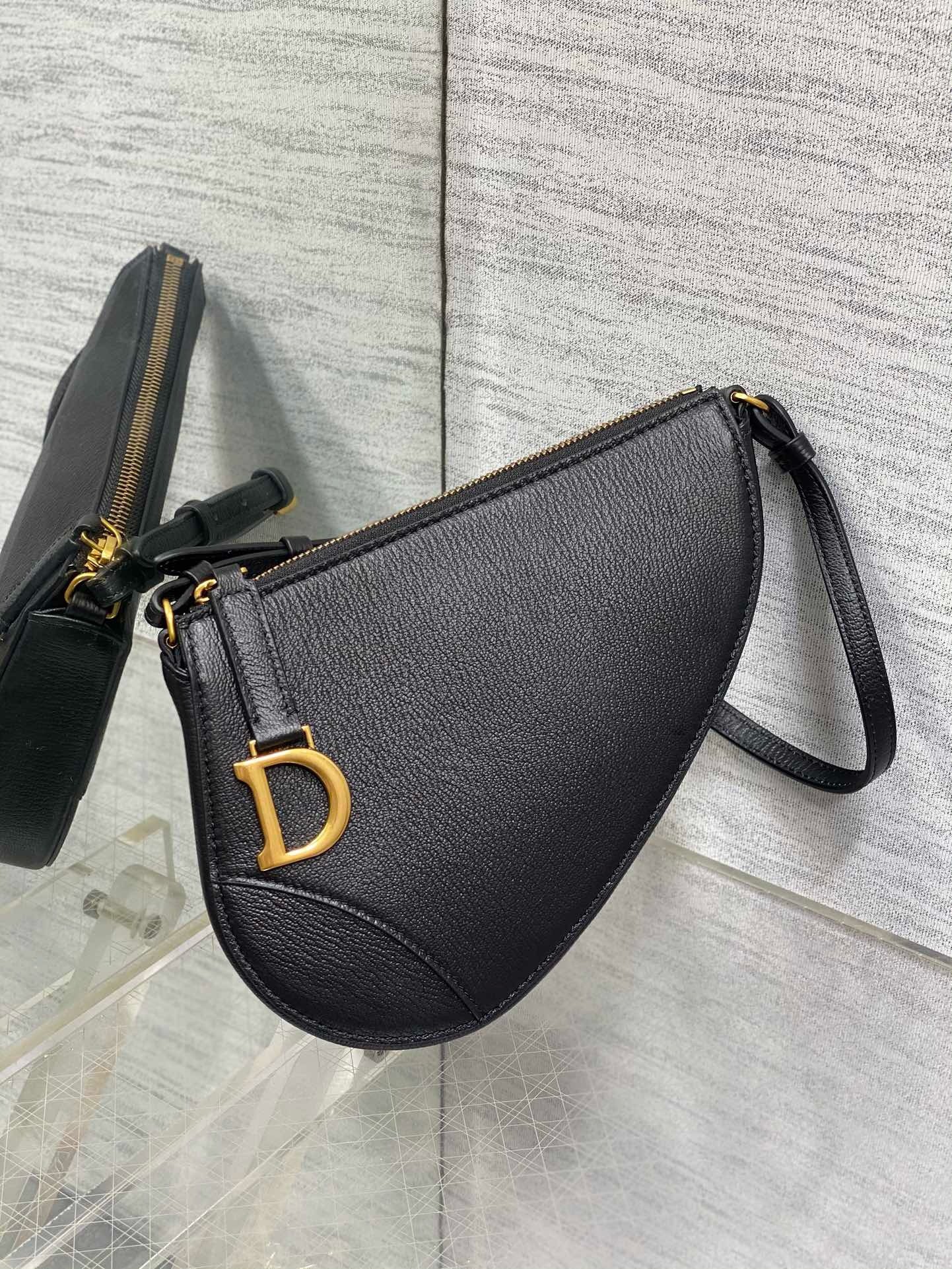 Dior Saddle Rodeo Pouch in Black Goatskin