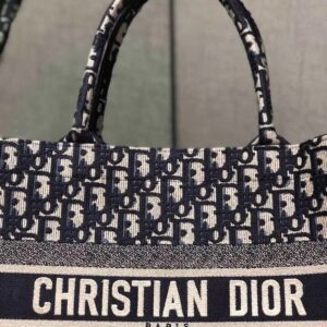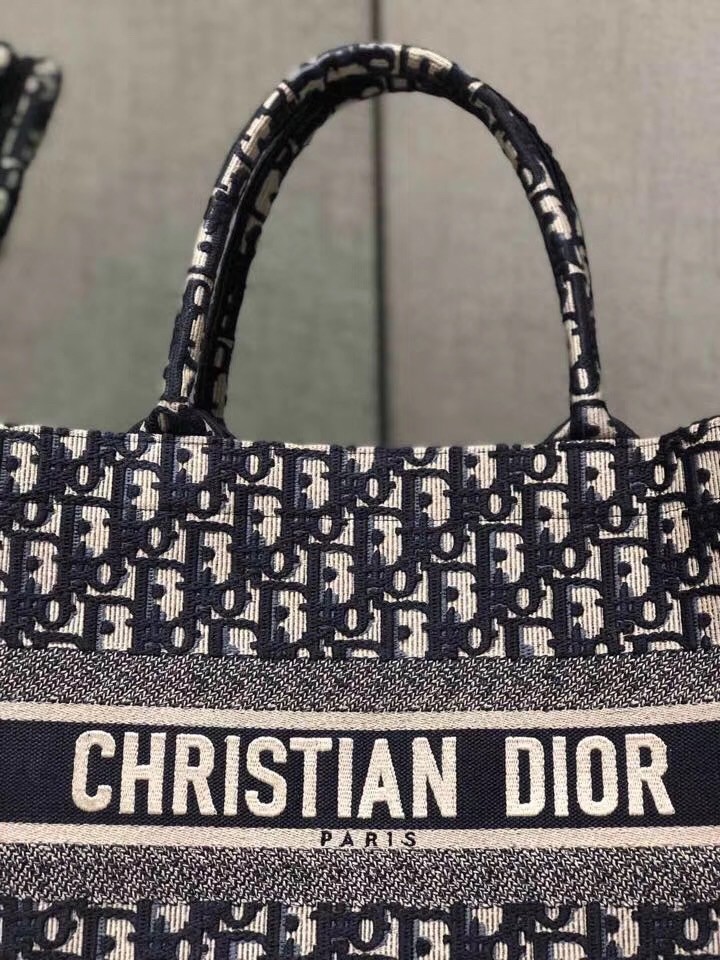 Dior Small Book Tote Bag In Blue Oblique Canvas