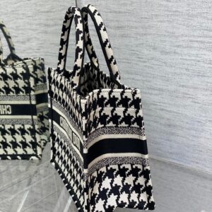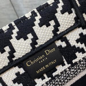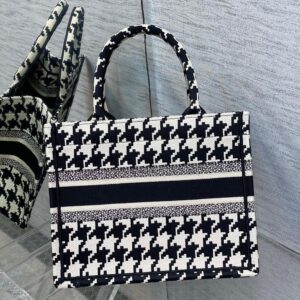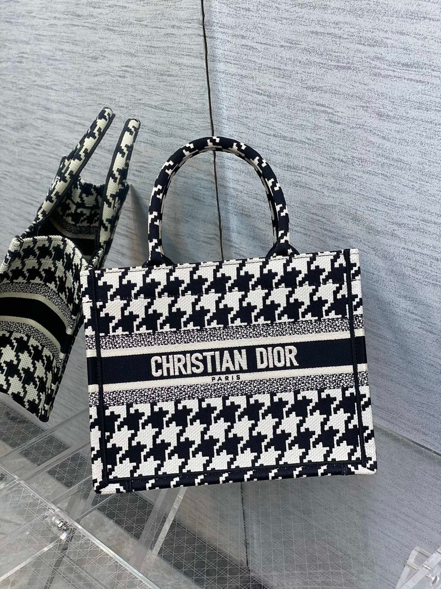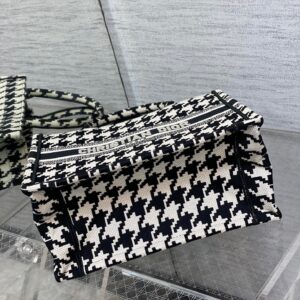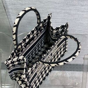 Dior Small Book Tote Bag In Micro Houndstooth Embroidery