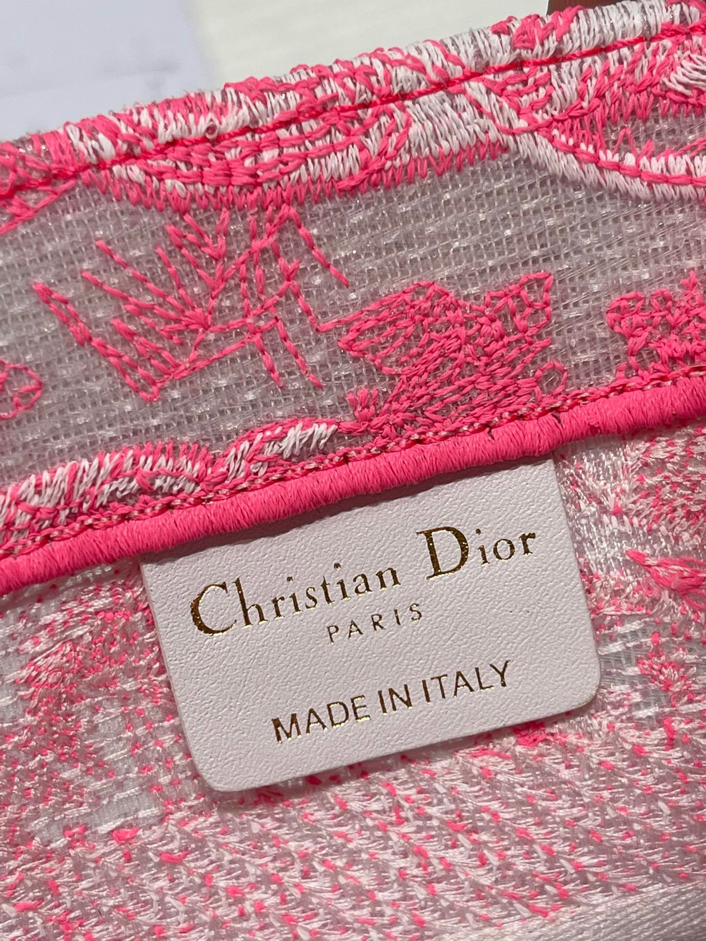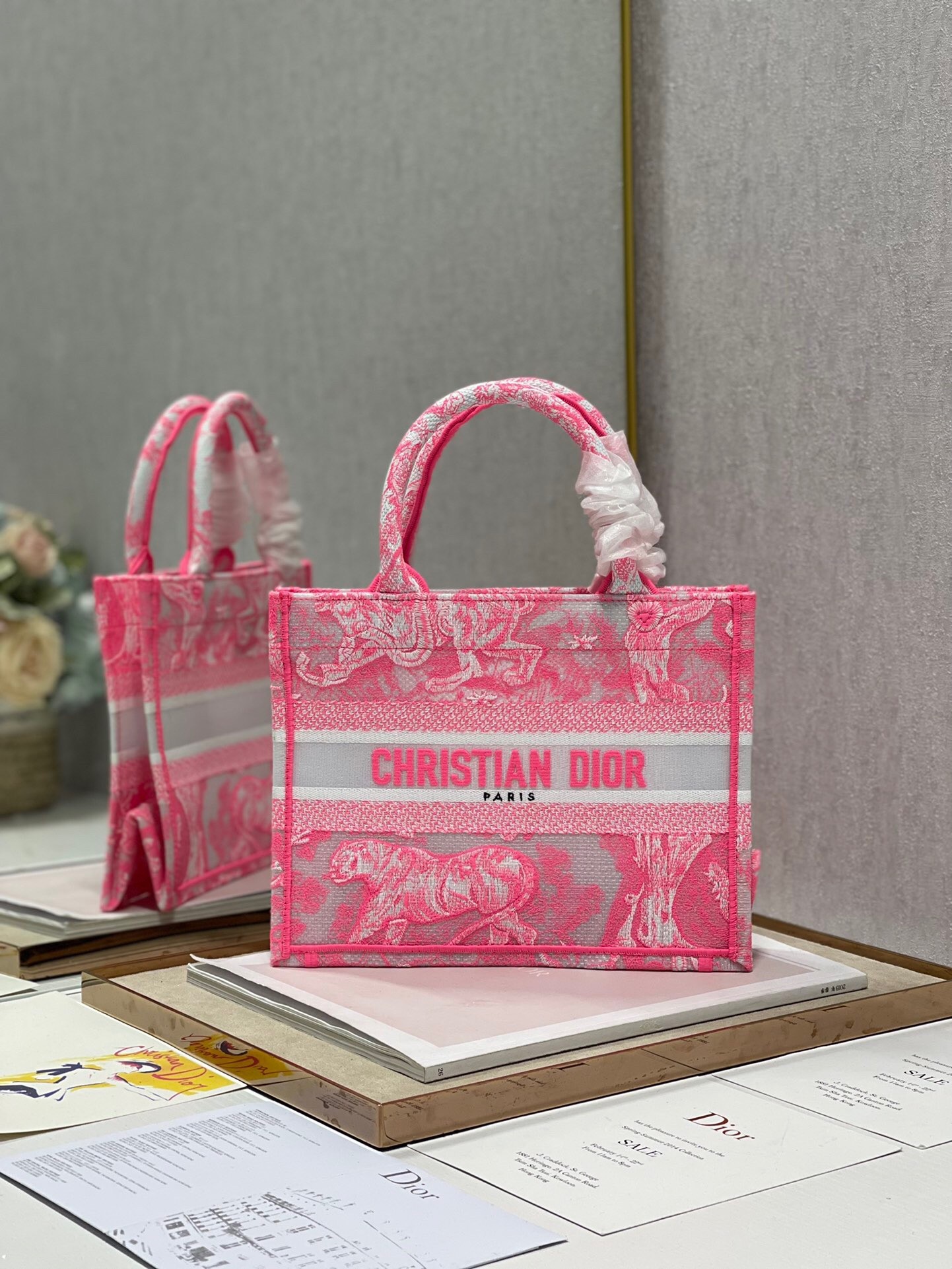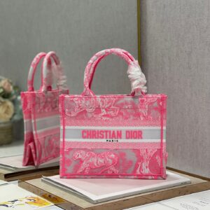 Dior Small Book Tote Bag In Pink Transparent Toile de Jouy Canvas