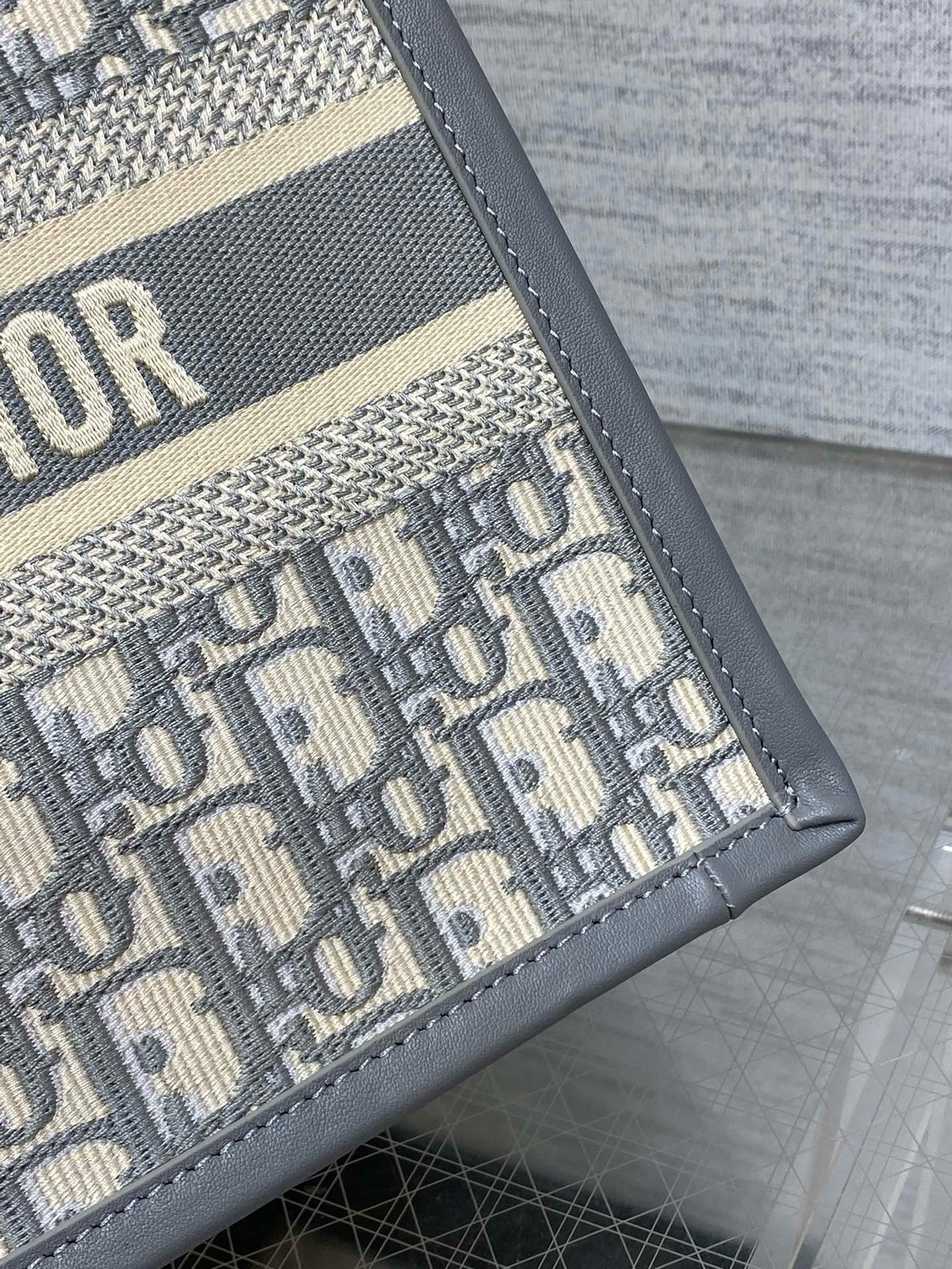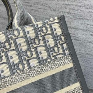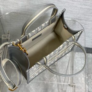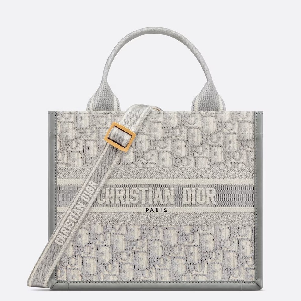 Dior Small Book Tote Bag with Strap in Grey Dior Oblique Canvas