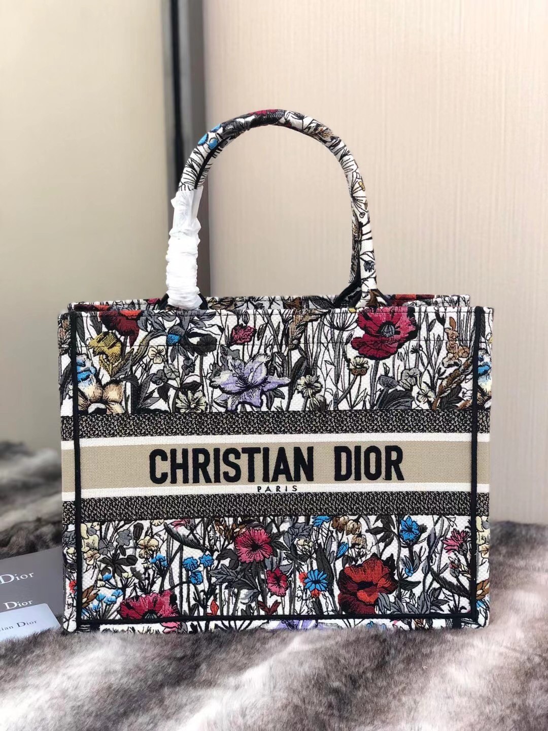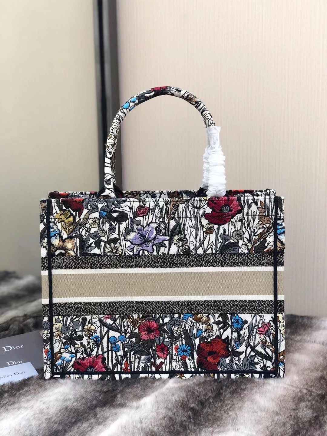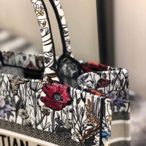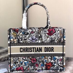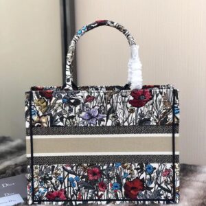 Dior Small Book Tote In Multicolor Mille Fleurs Embroidery