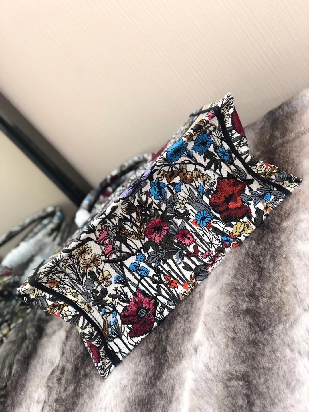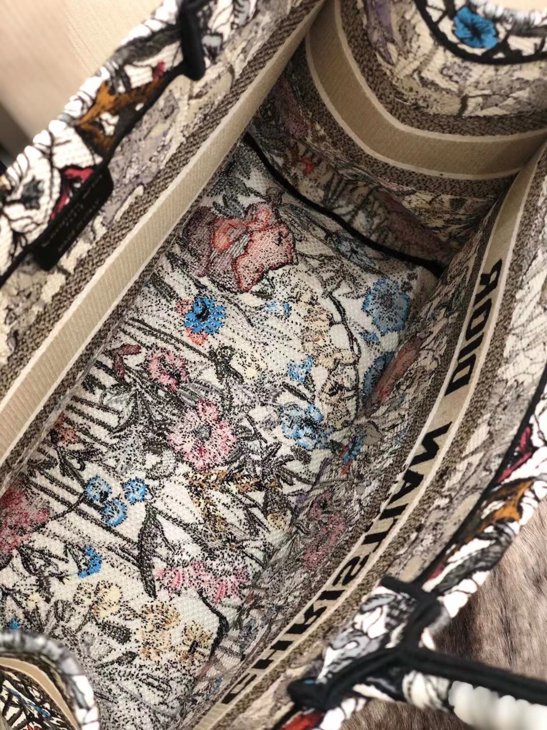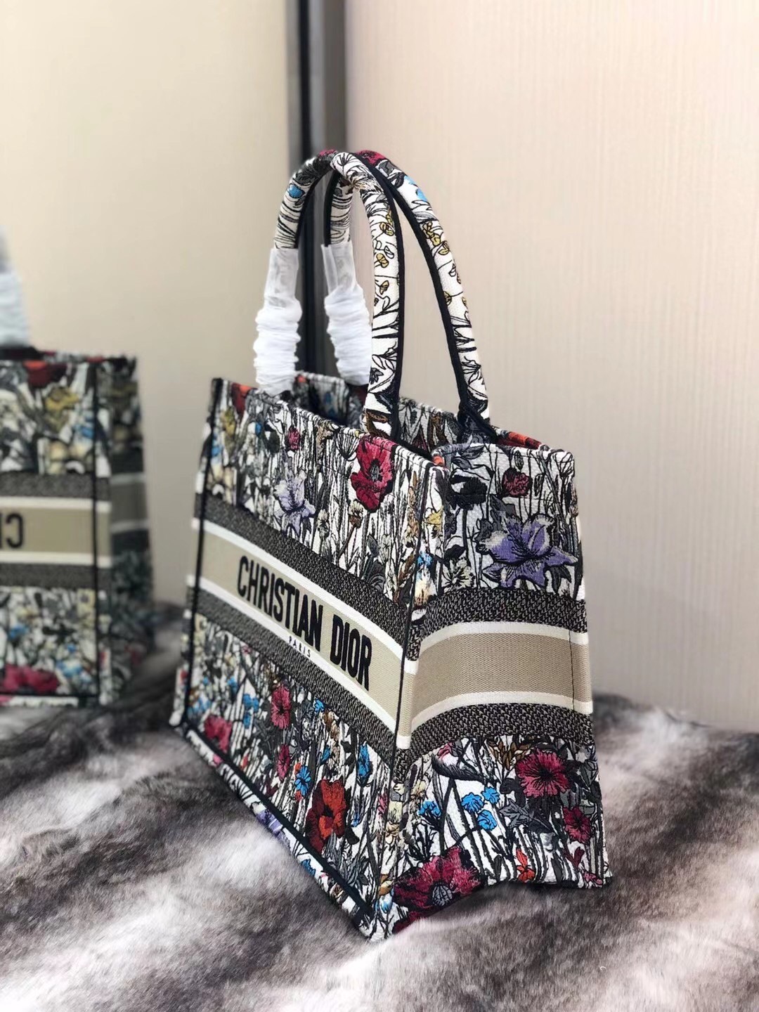Dior Small Book Tote In Multicolor Mille Fleurs Embroidery