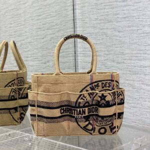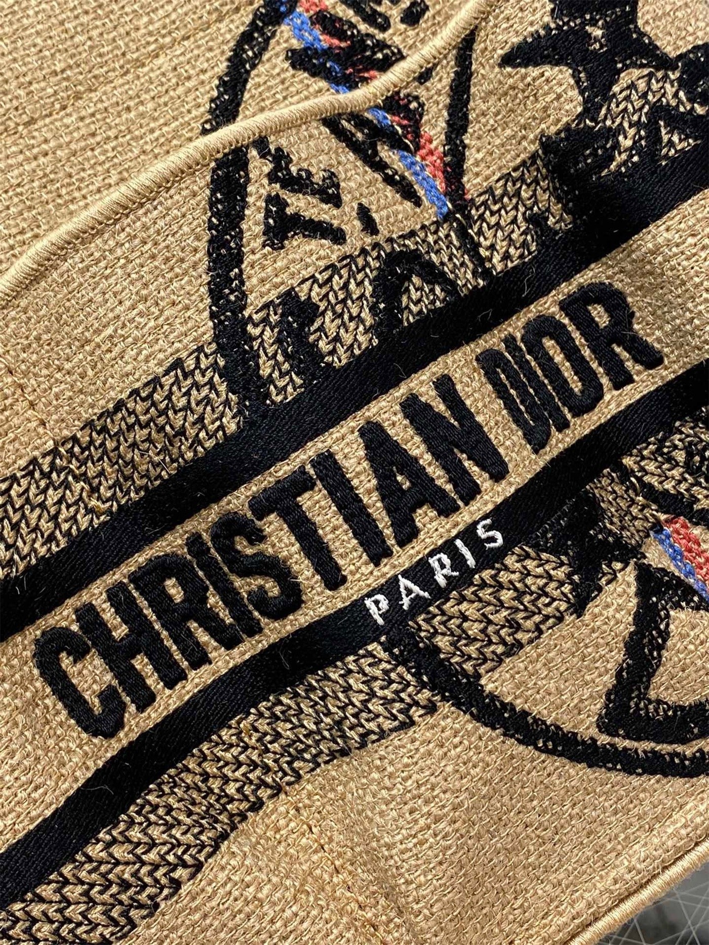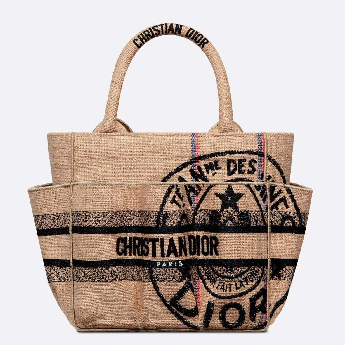 – Beige Jute Canvas Embroidered with Dior Union Motif