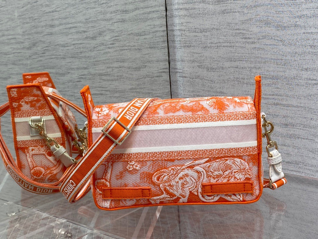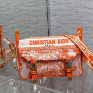 Dior Small Diorcamp Bag In Orange Transparent Toile de Jouy Canvas