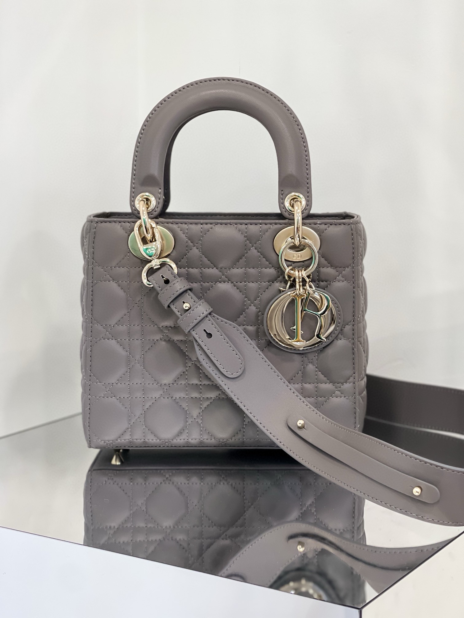 Dior Small Lady Dior My ABCDior Bag in Steel Grey Lambskin