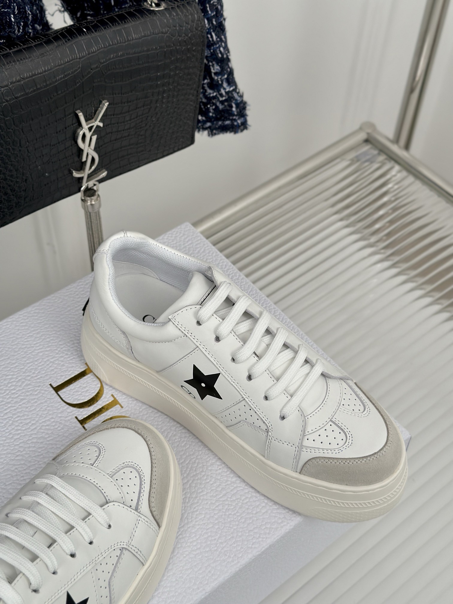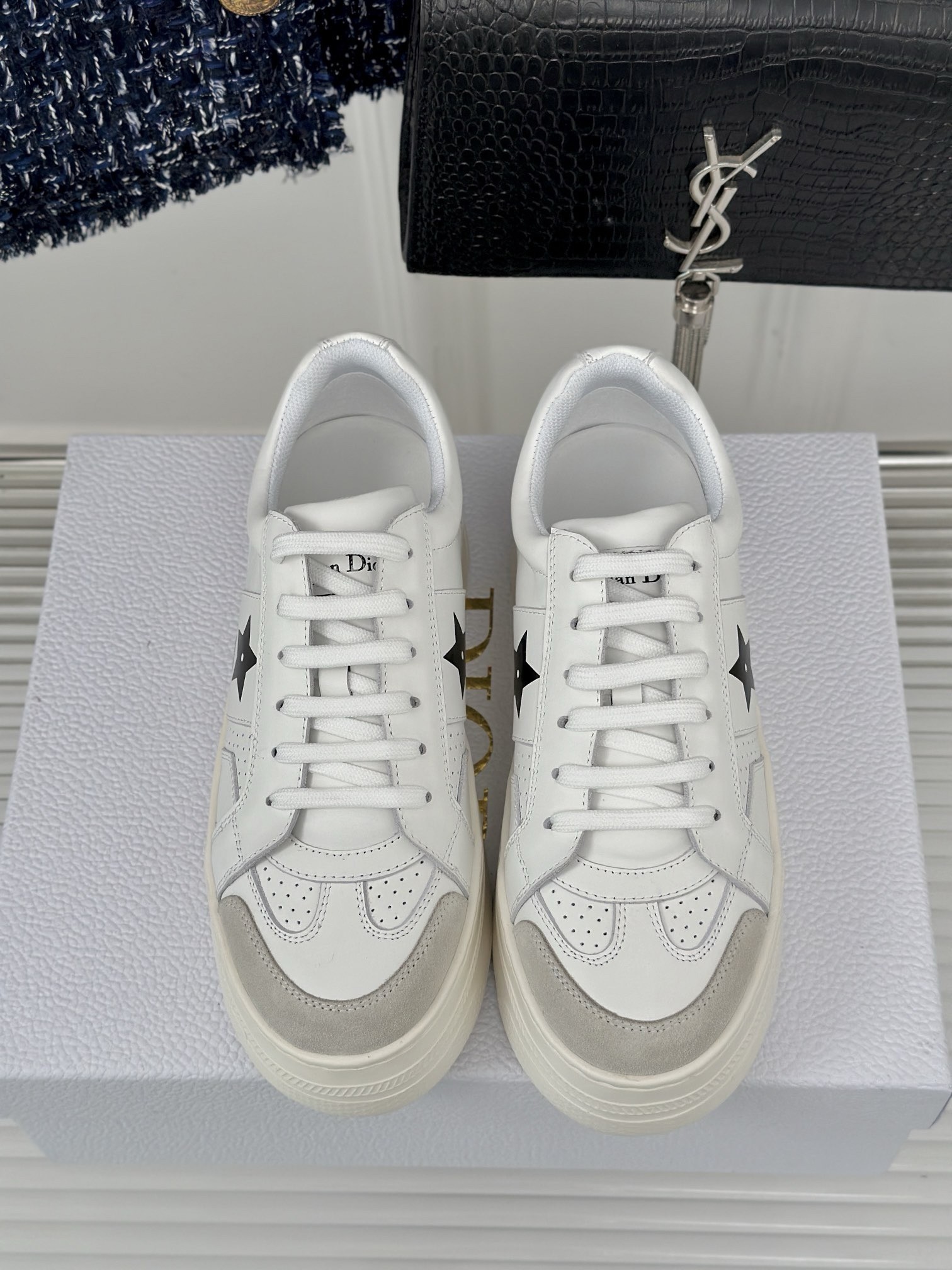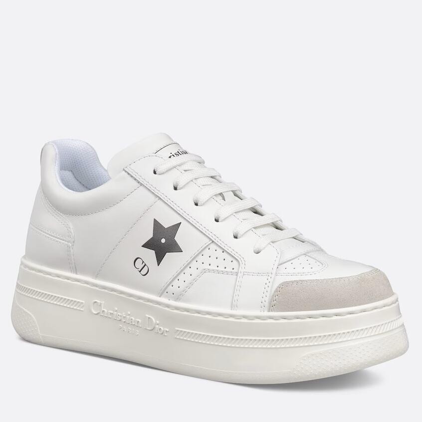Dior Star Platform Sneakers in White Calfskin with Black Star