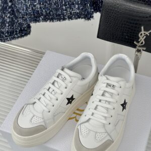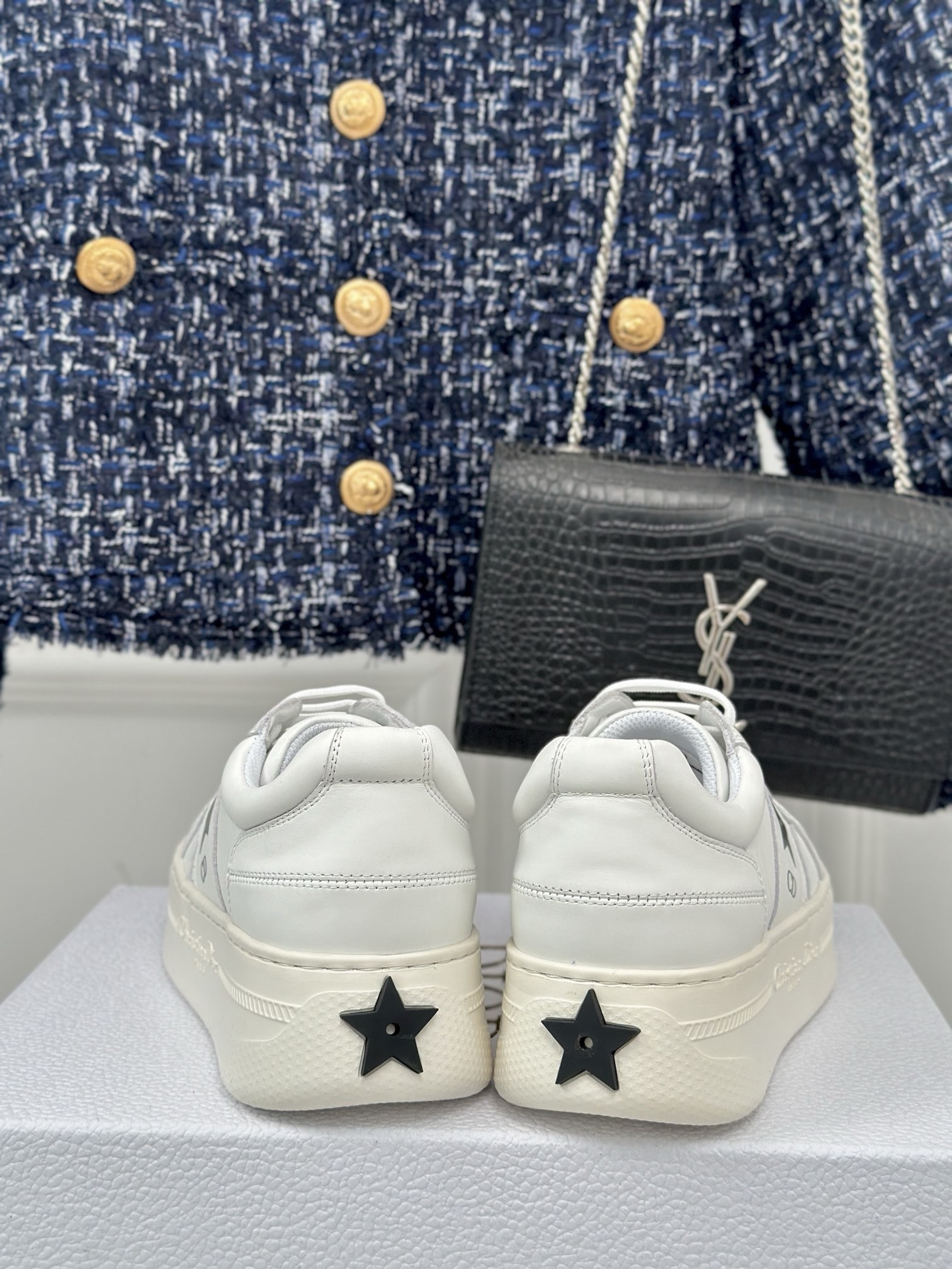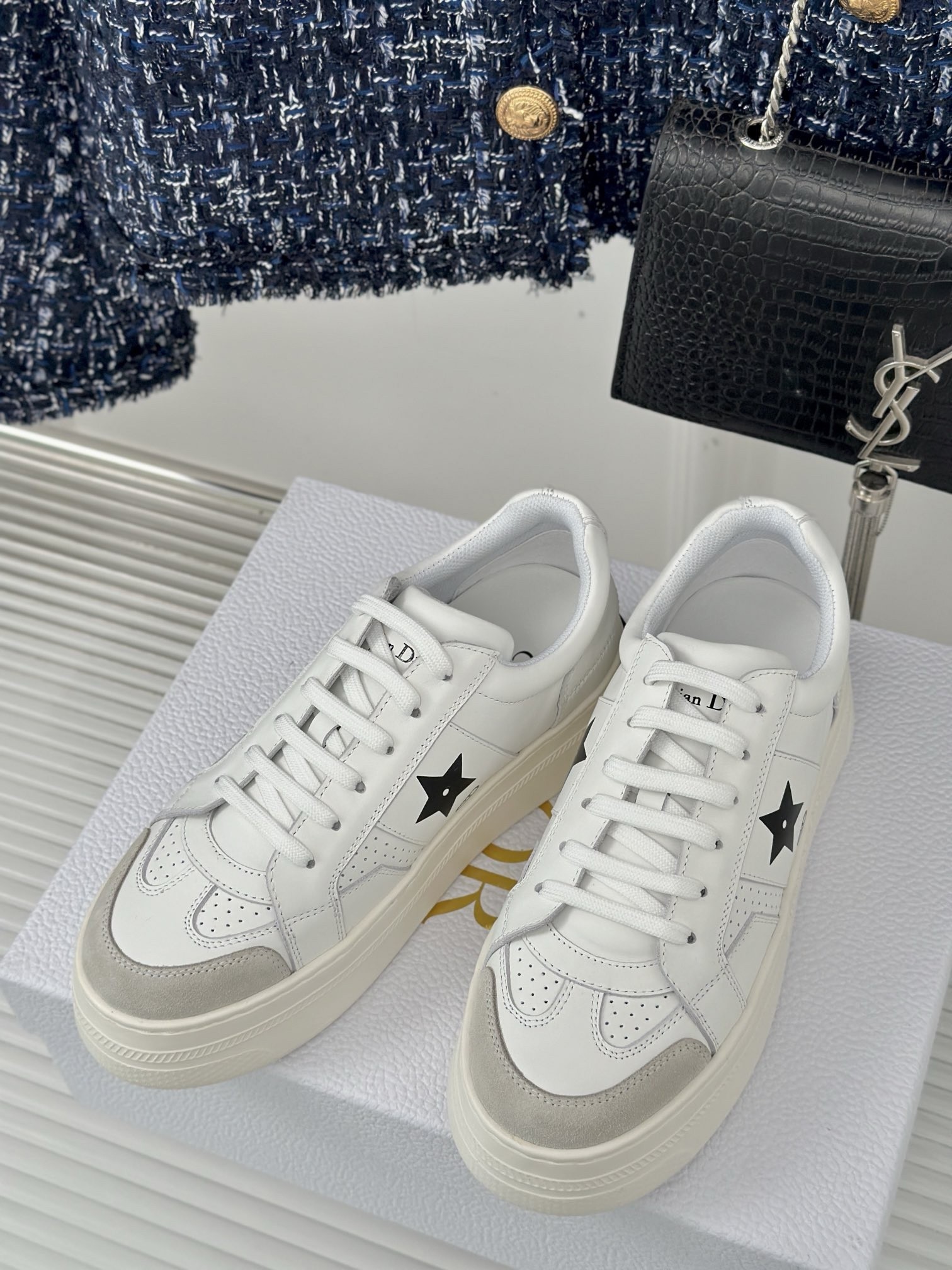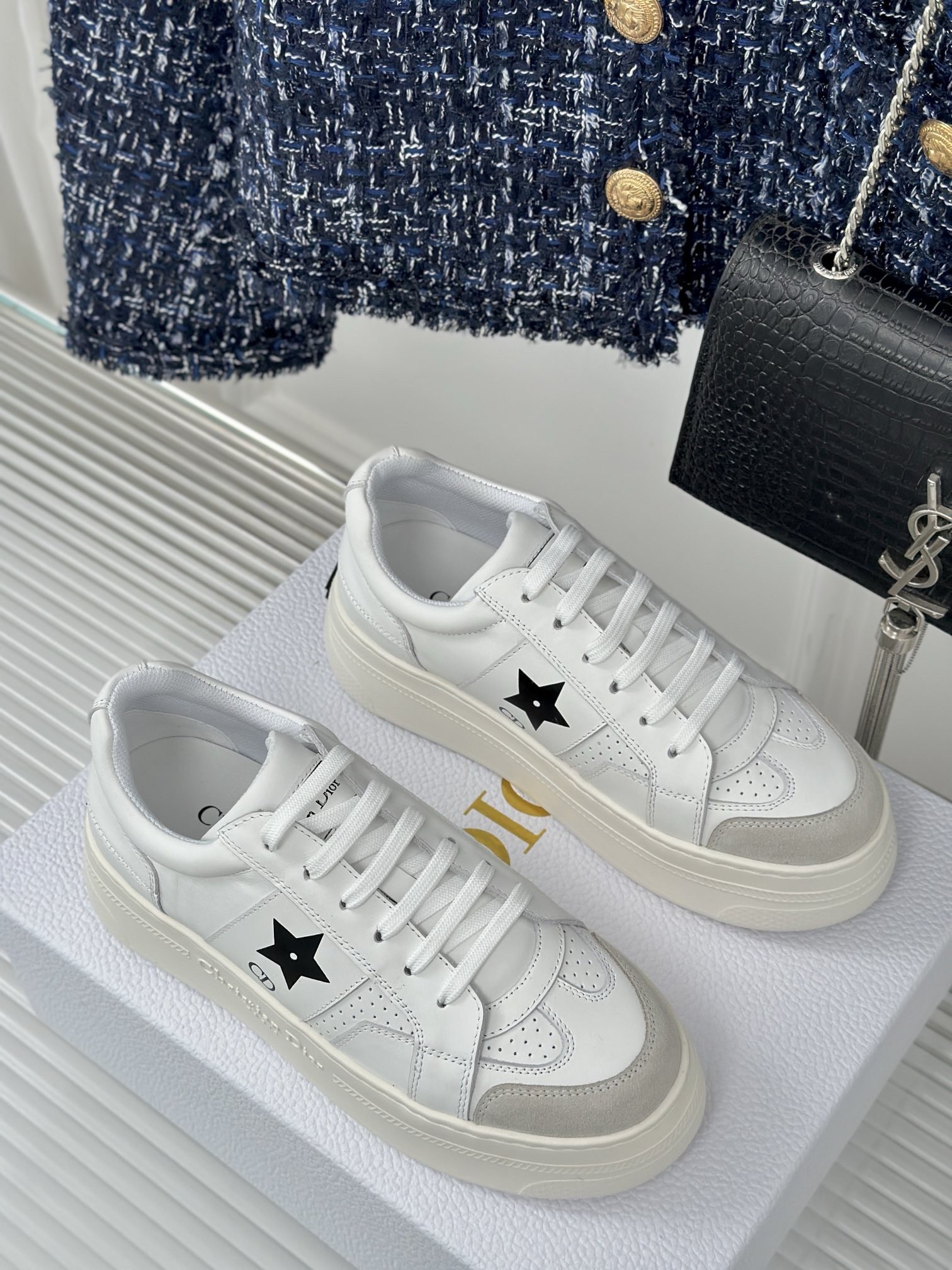 Dior Star Platform Sneakers in White Calfskin with Black Star