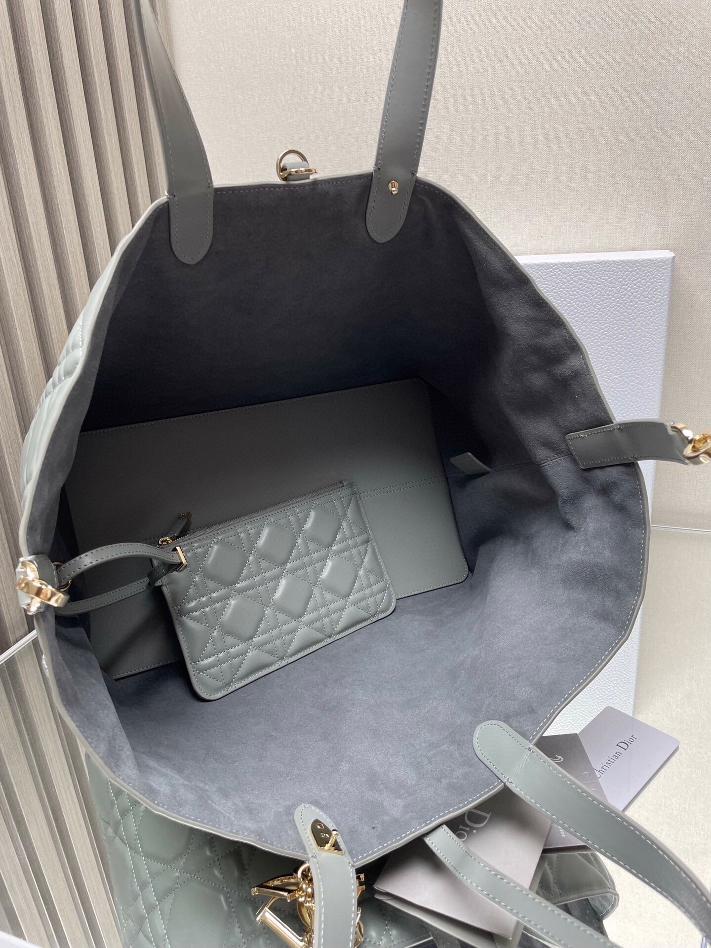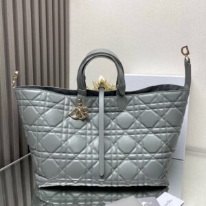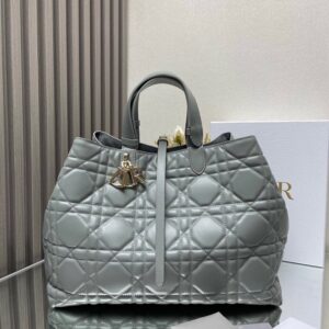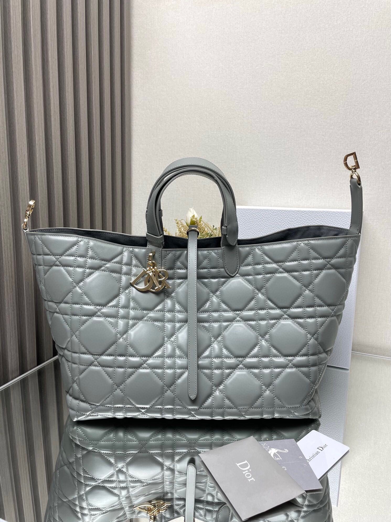 Dior Toujours Large Bag in Grey Macrocannage Calfskin