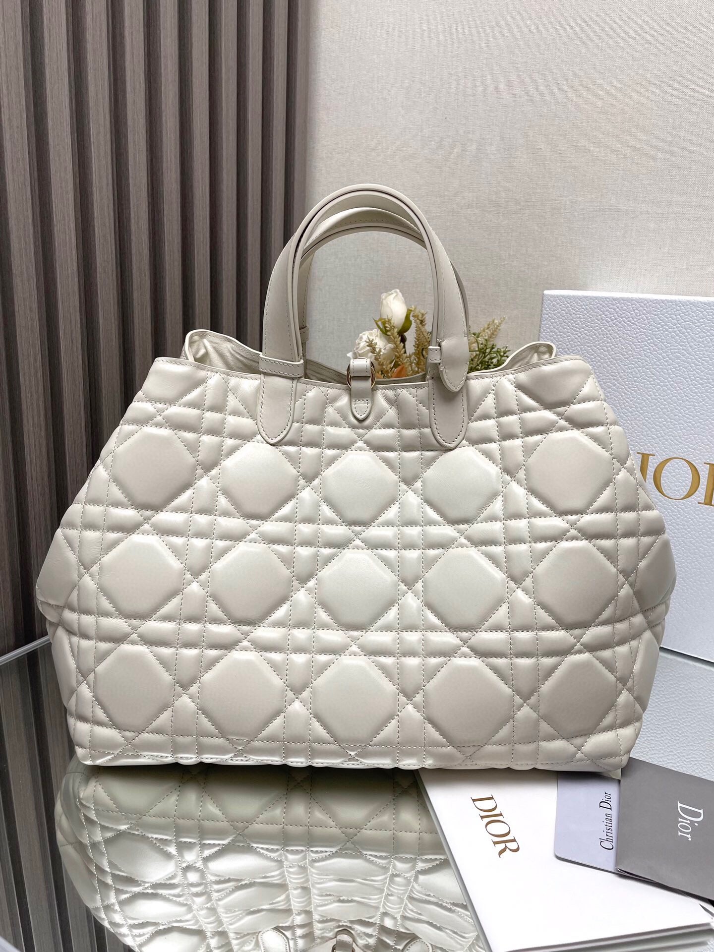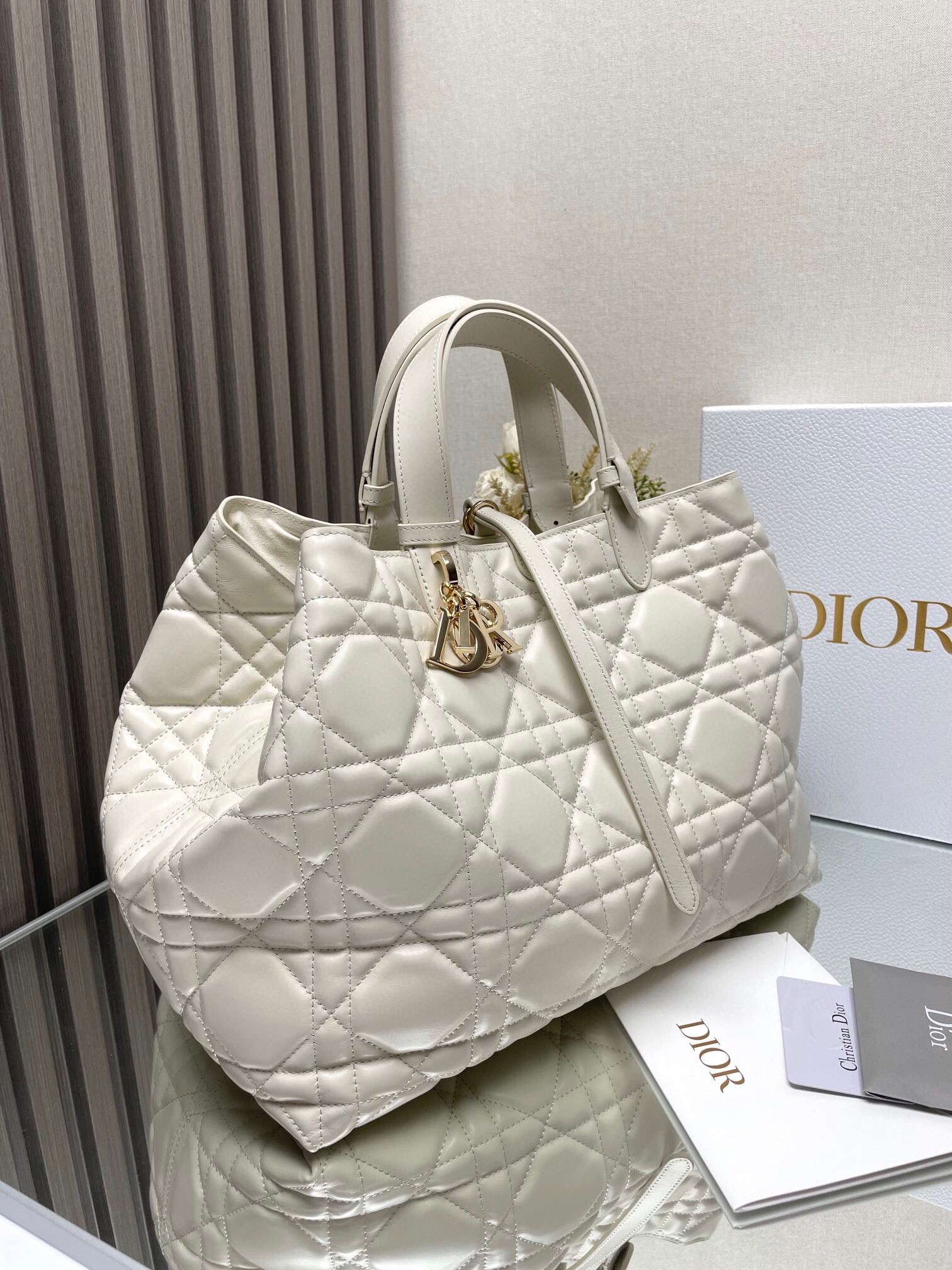 Dior Toujours Large Bag in White Macrocannage Calfskin