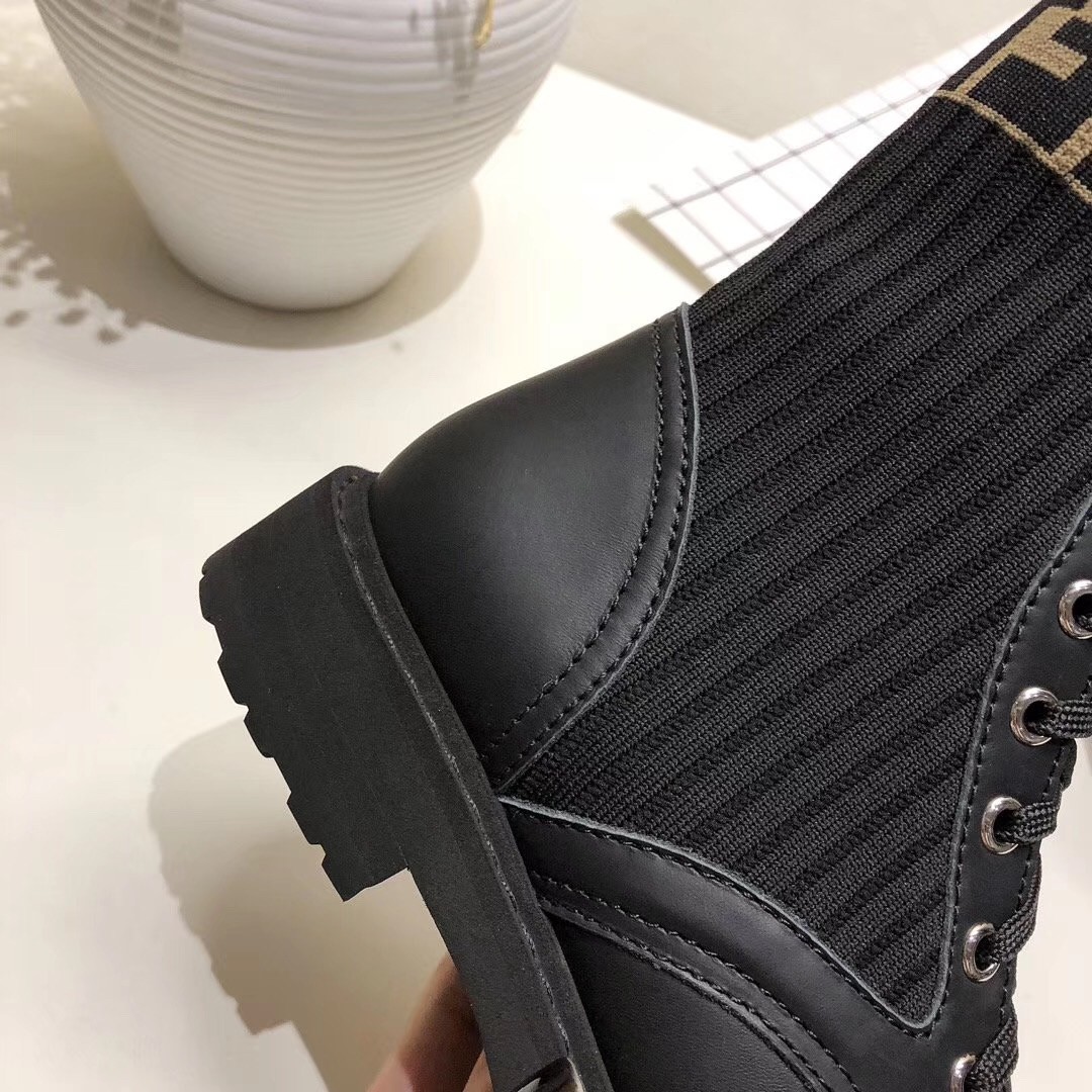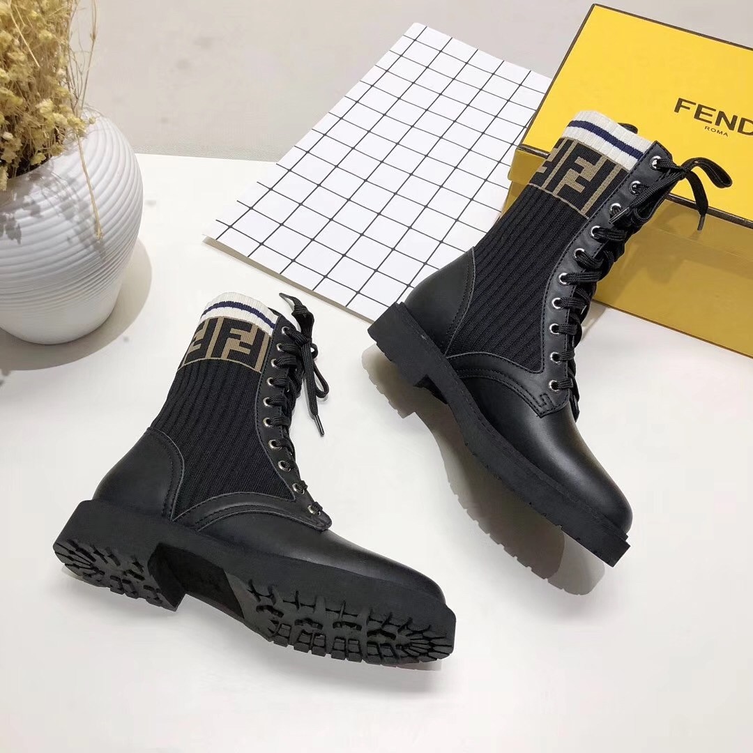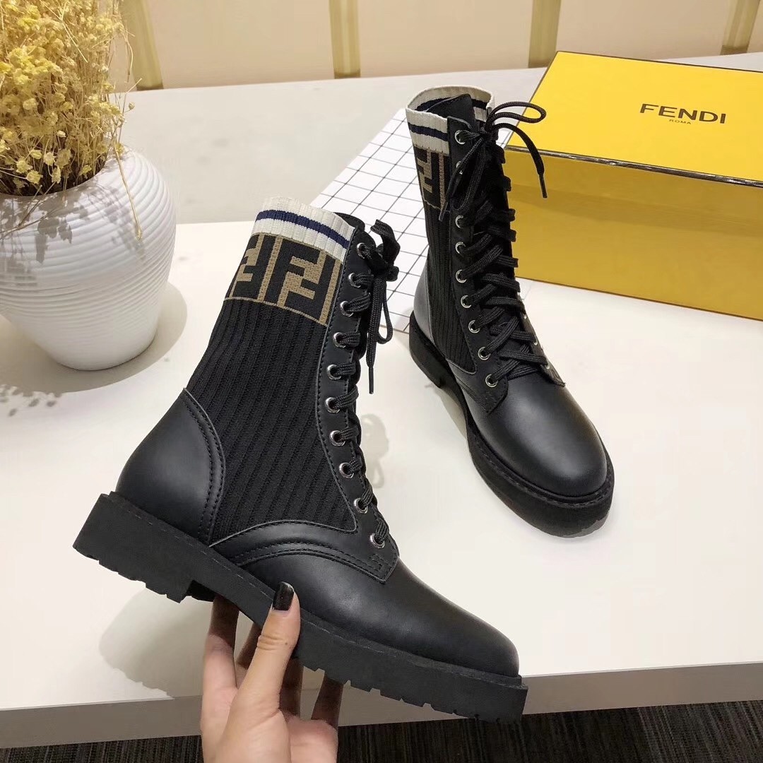 Fendi Ankle Boots In Black Leather With Stretch Fabric