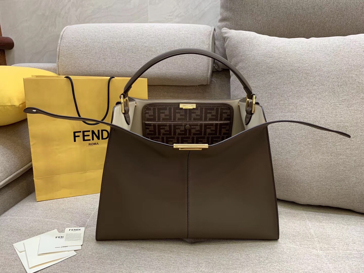 – Glazed fabric interior with tone-on-tone FF motif