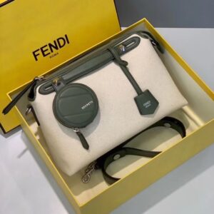 Fendi By The Way Medium Bag In Canvas With Green Leather