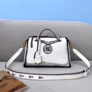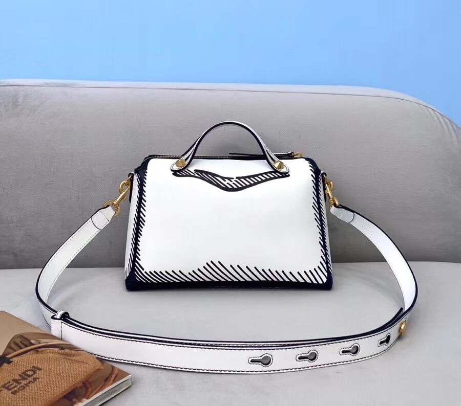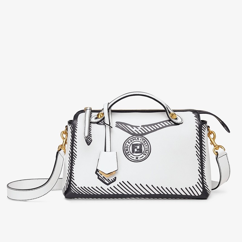 Fendi By The Way Medium Bag In White Printed Leather
