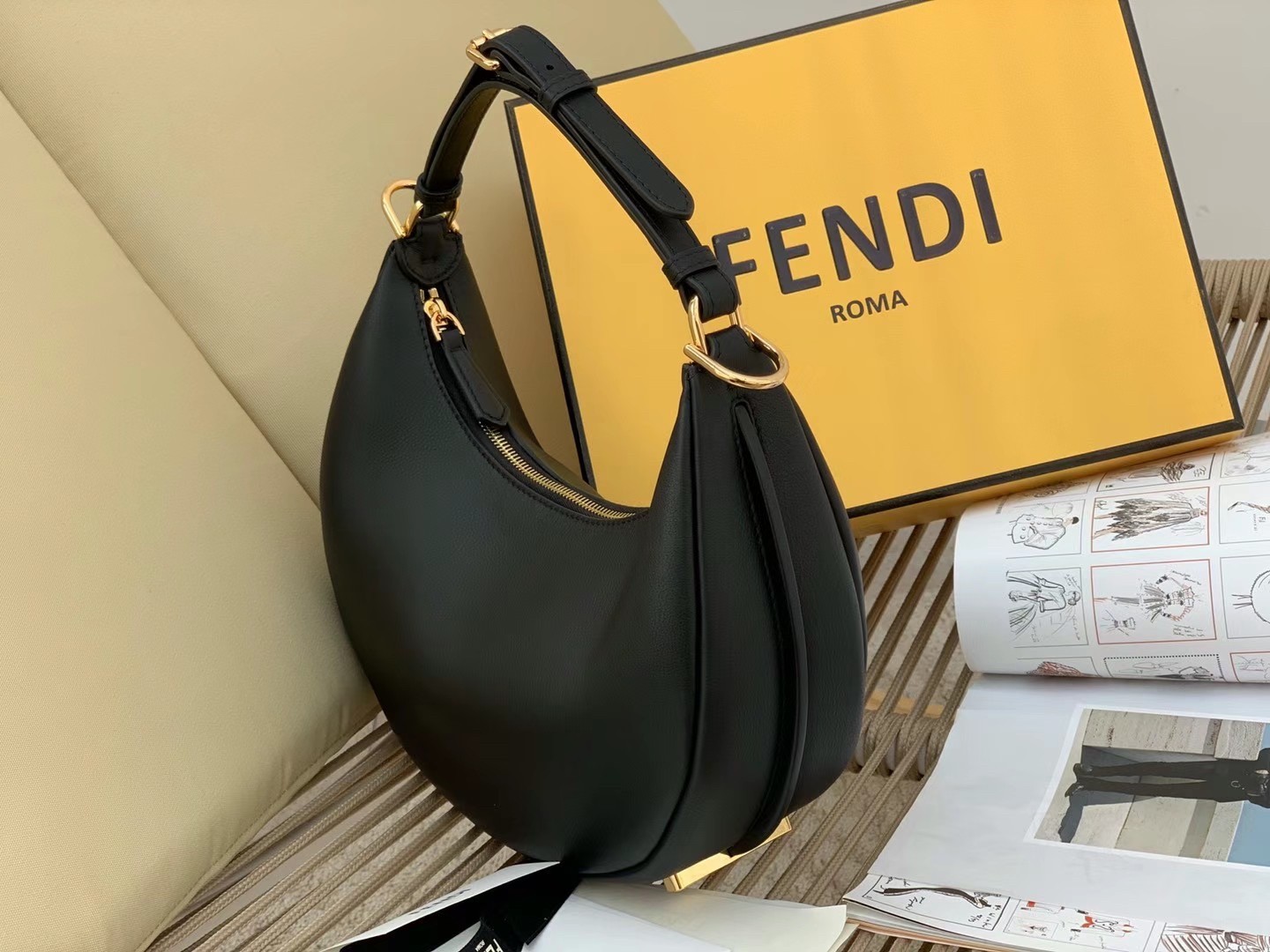 – Maxi Fendi golden metal script