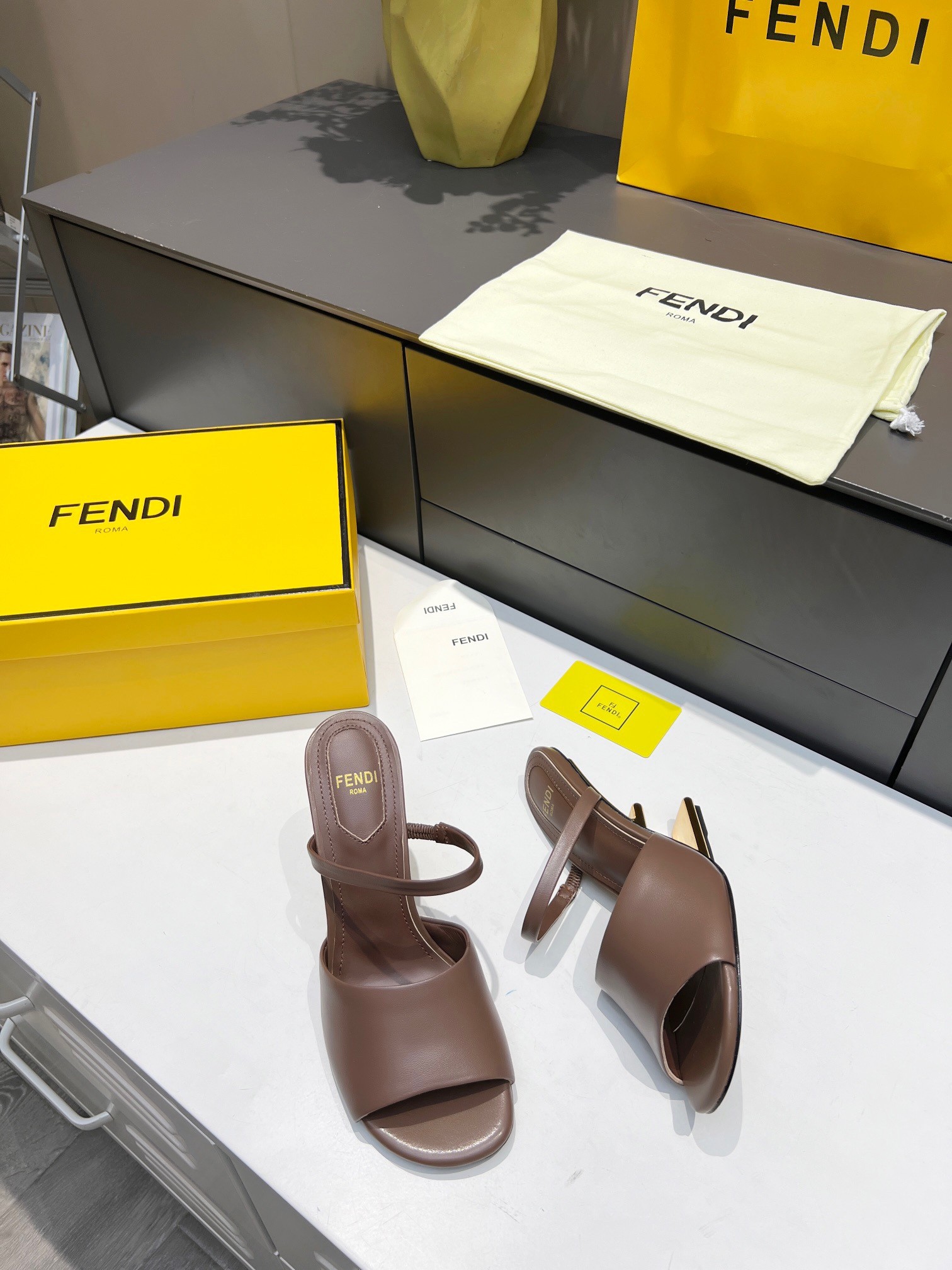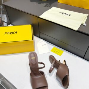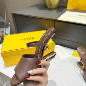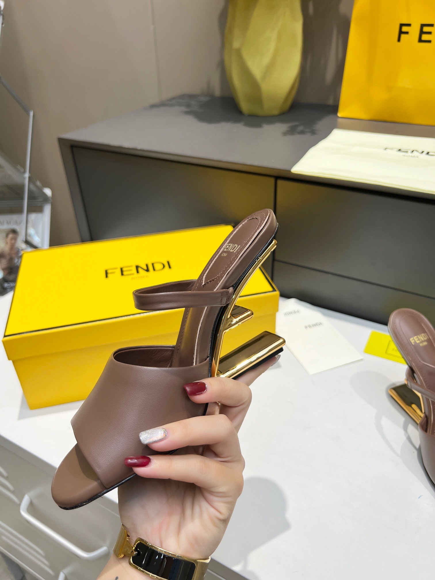 – Diagonal F-shaped sculpted heel in gold-colored metal