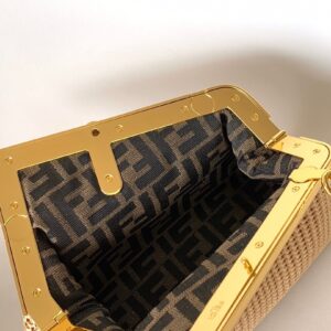 Fendi First Small Bag In Beige Raffia Macrame