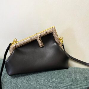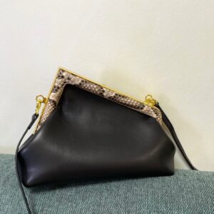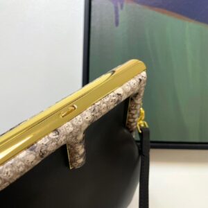 – Oversize metal F clasp bound in luxury tone on tone python leather