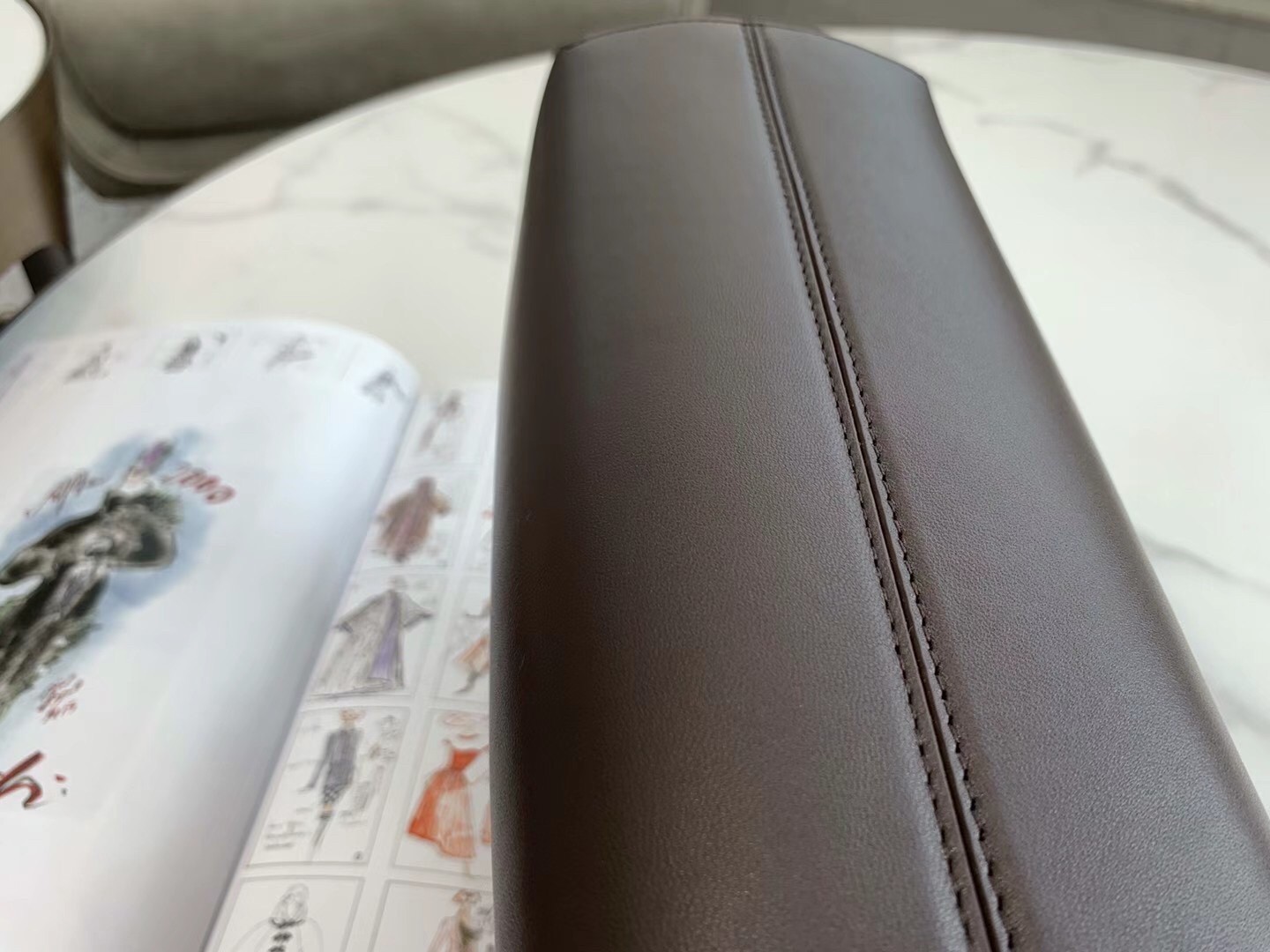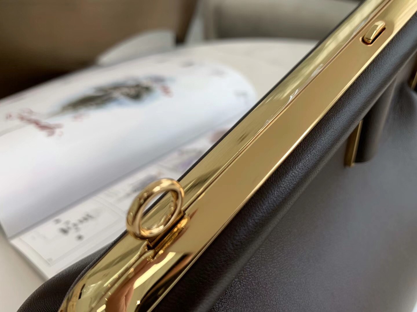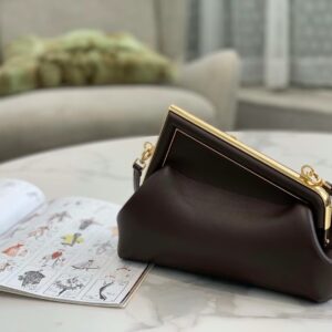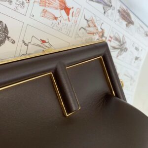 – Oversized metal F clasp bound with tone on tone nappa leather