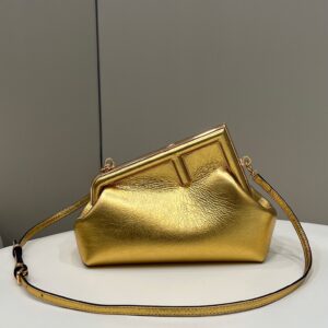 – Oversized metal F clasp bound with tone on tone nappa leather