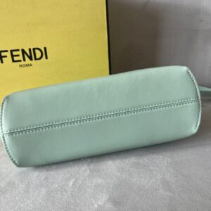 – Oversized metal F clasp bound with tone on tone nappa leather