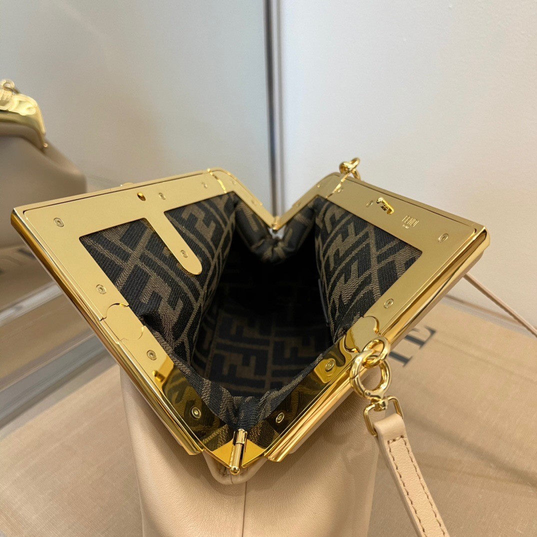 – Oversized metal F clasp bound with tone on tone nappa leather