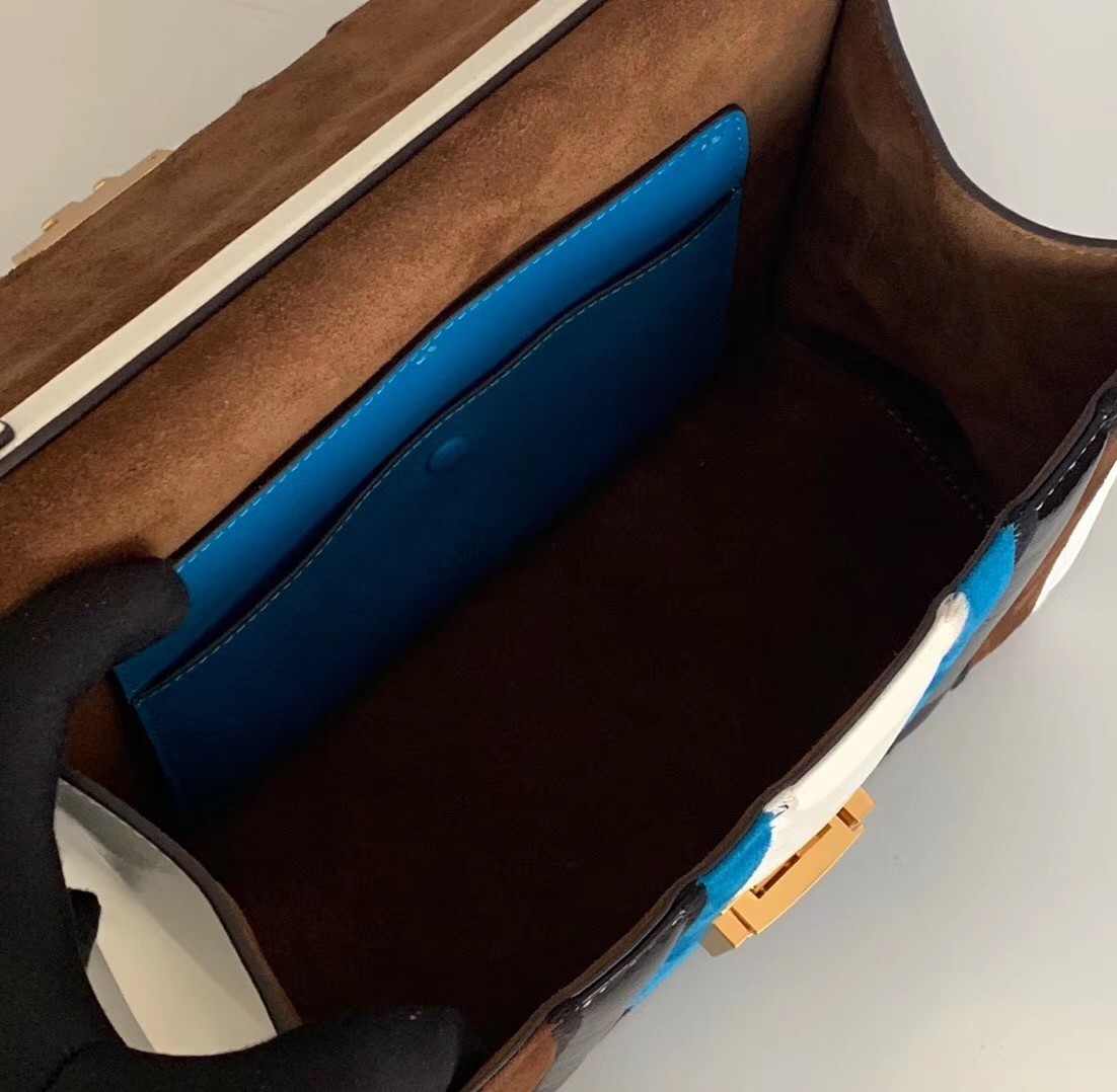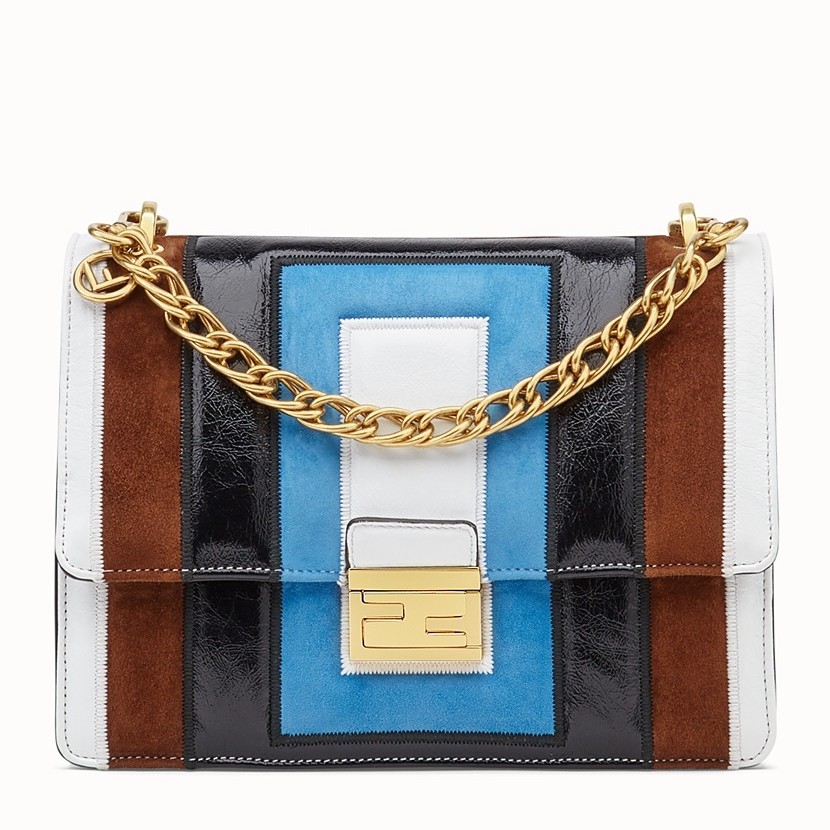 – Geometric flap with embossed corners and an iconic FF press-stud fastening