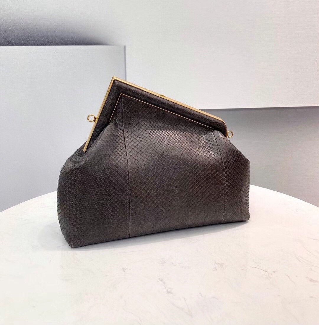 Fendi Medium First Bag In Dark Brown Python Leather