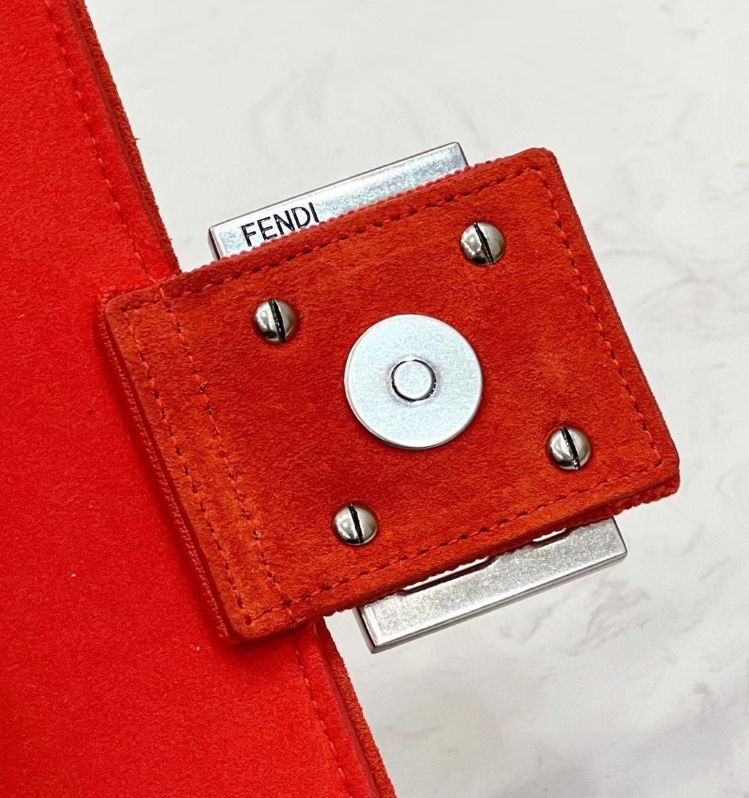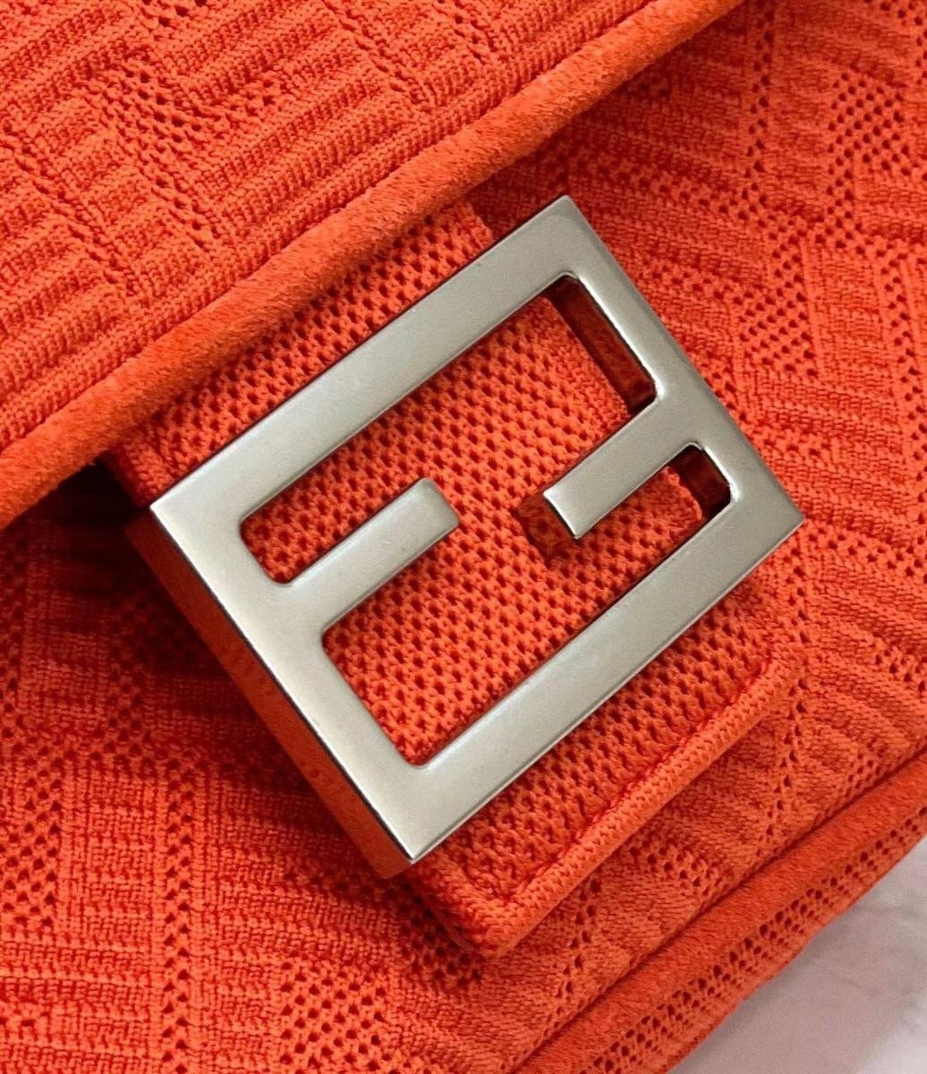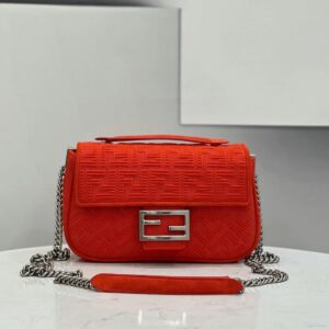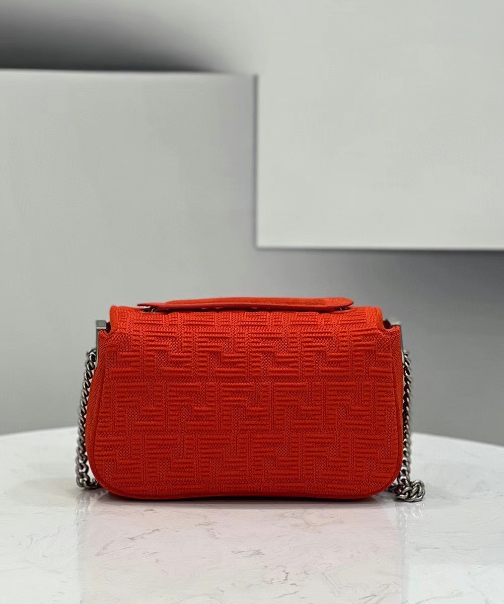 Fendi Midi Baguette Chain Bag In Piment FF Fabric
