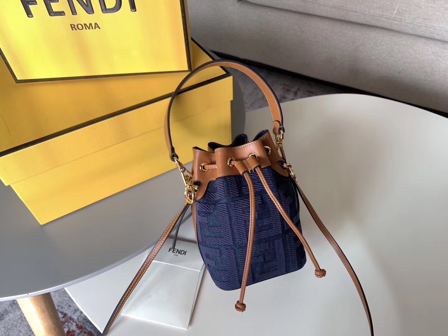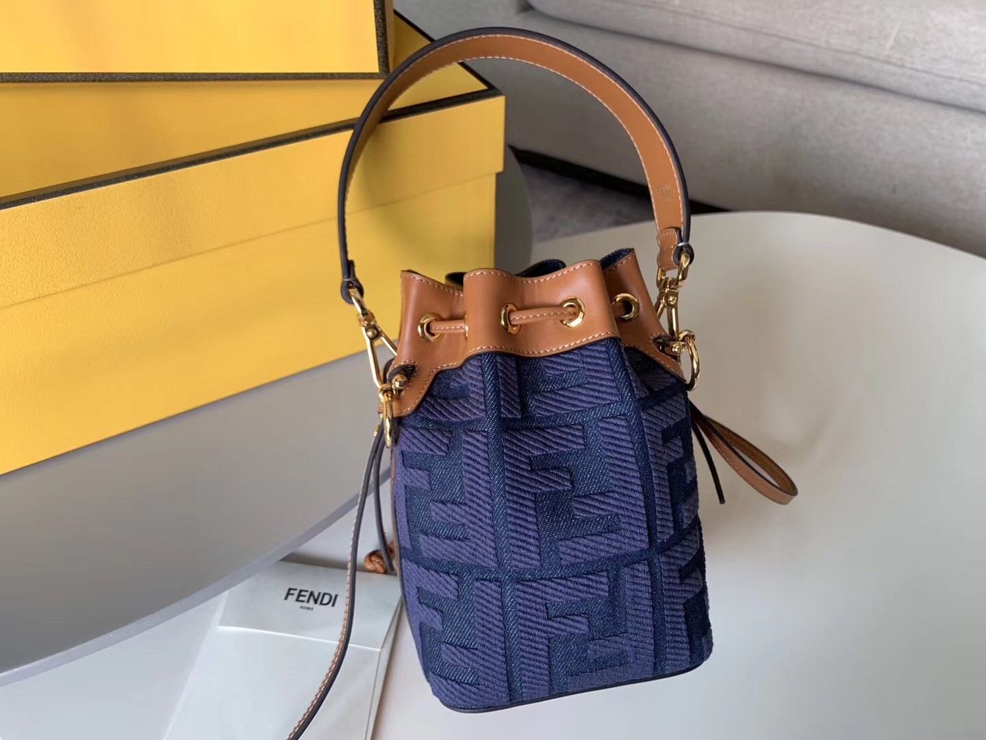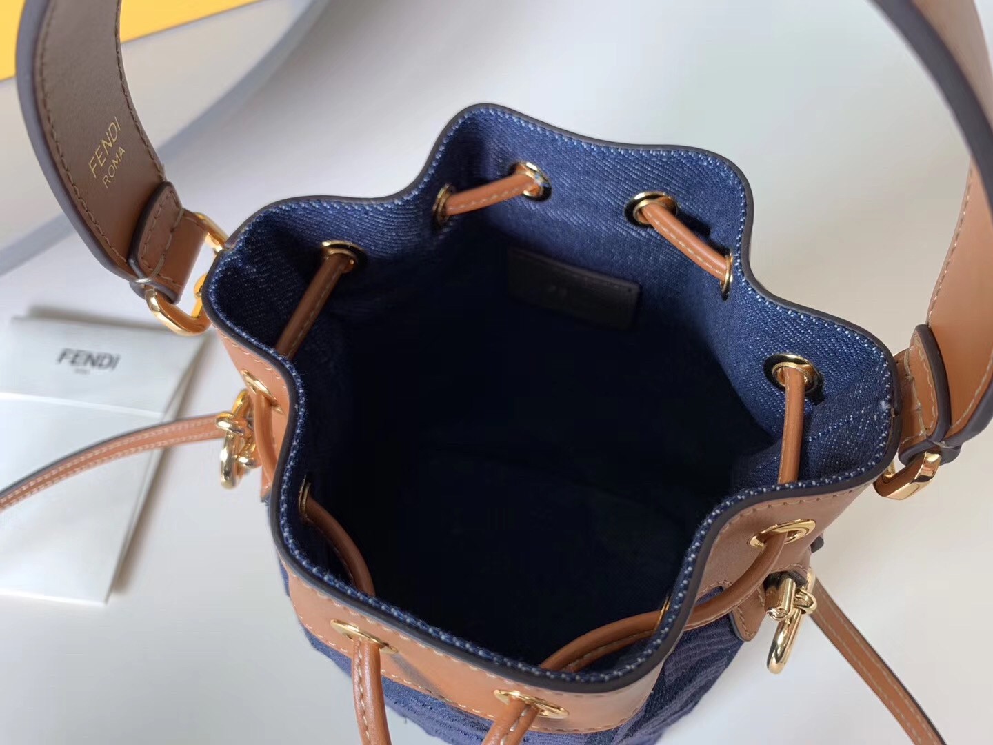 Fendi Mon Tresor Mini Bucket Bag In Blue Denim