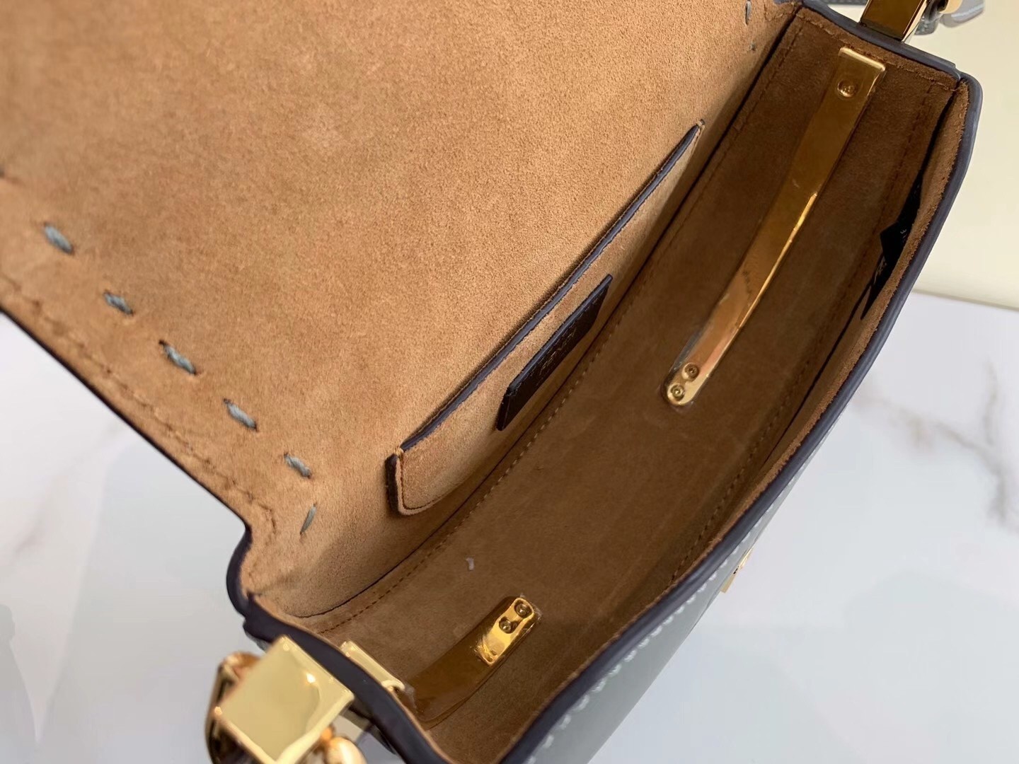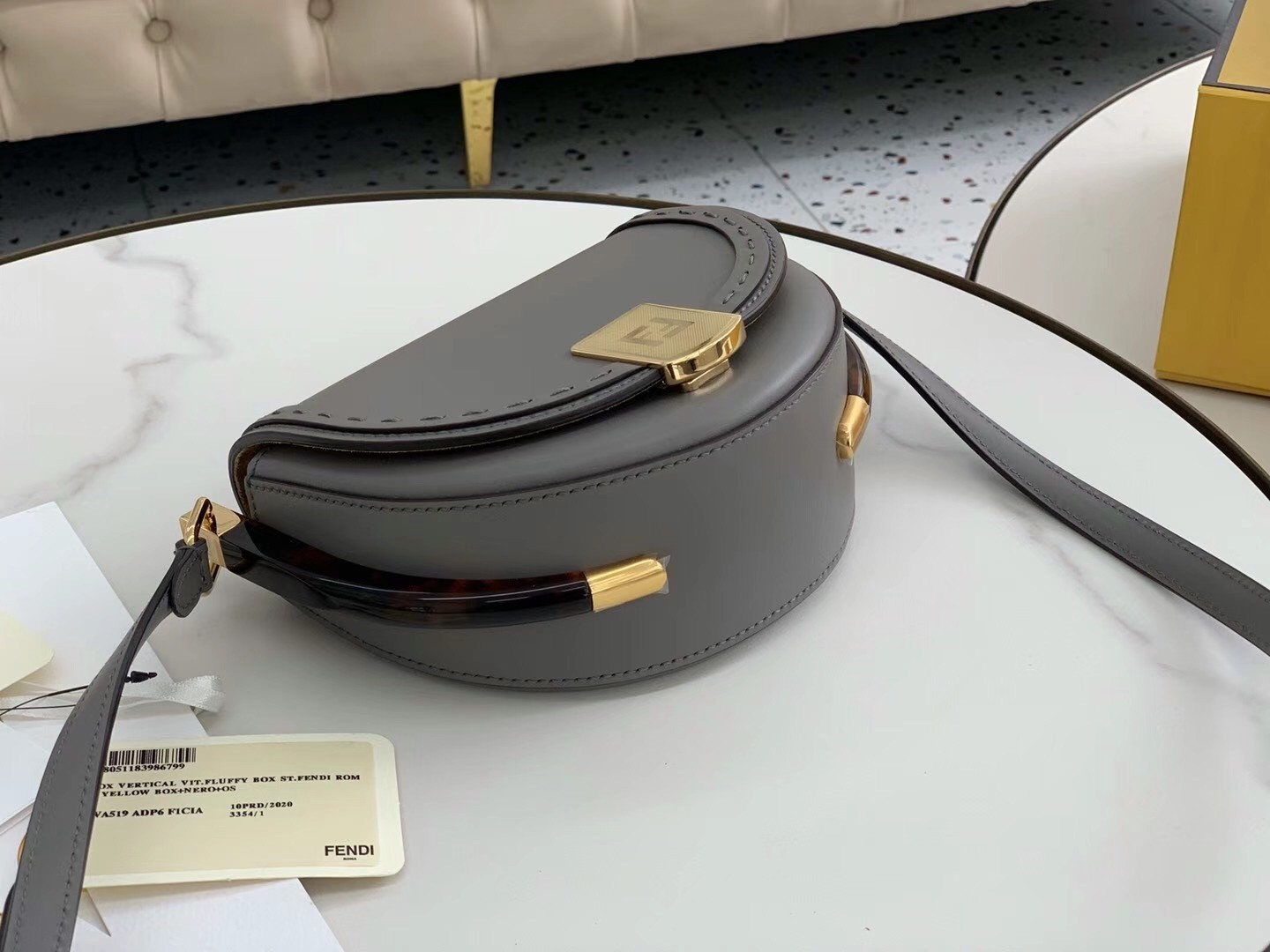 – Hot-pressed Fendi Roma under the flap